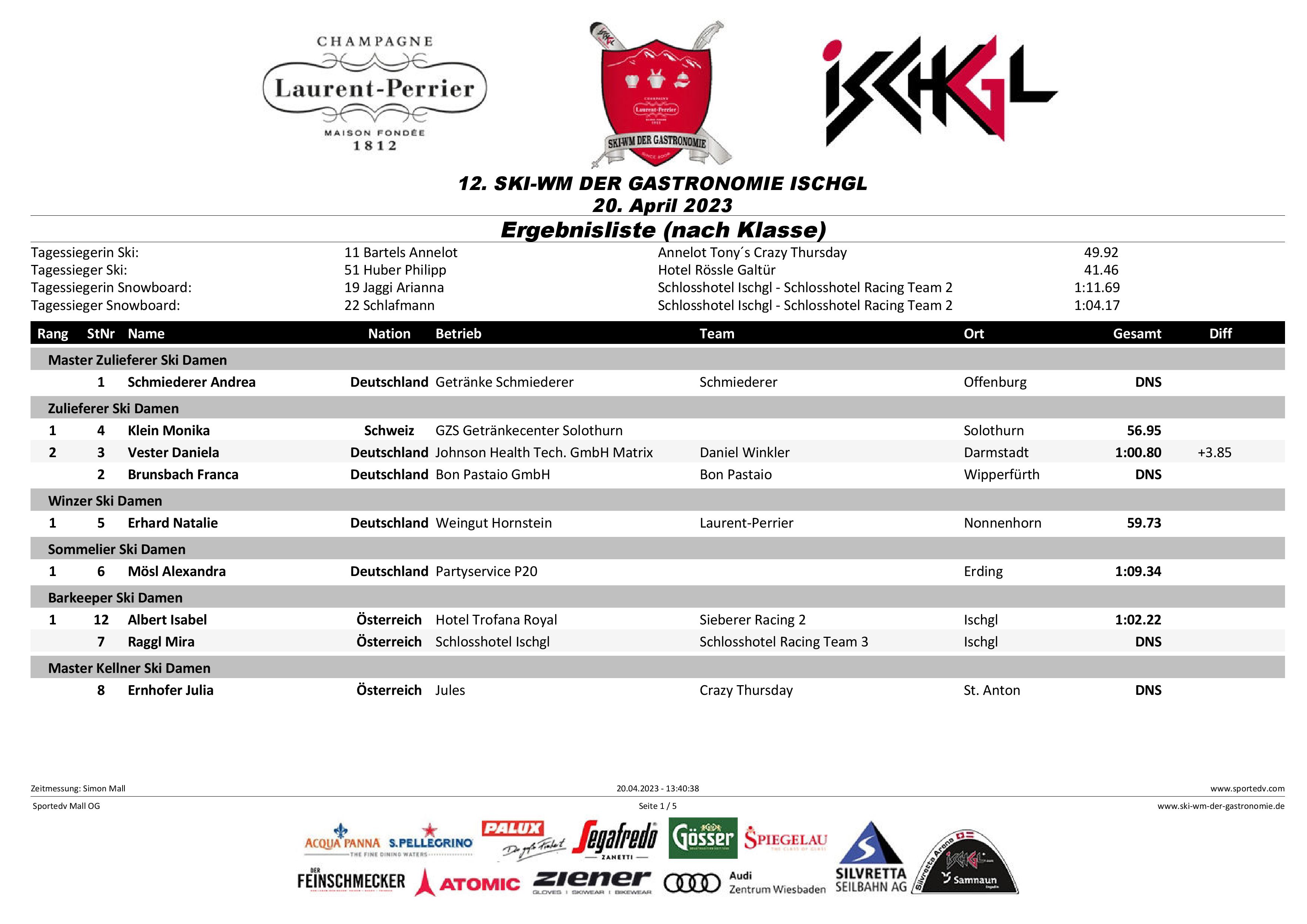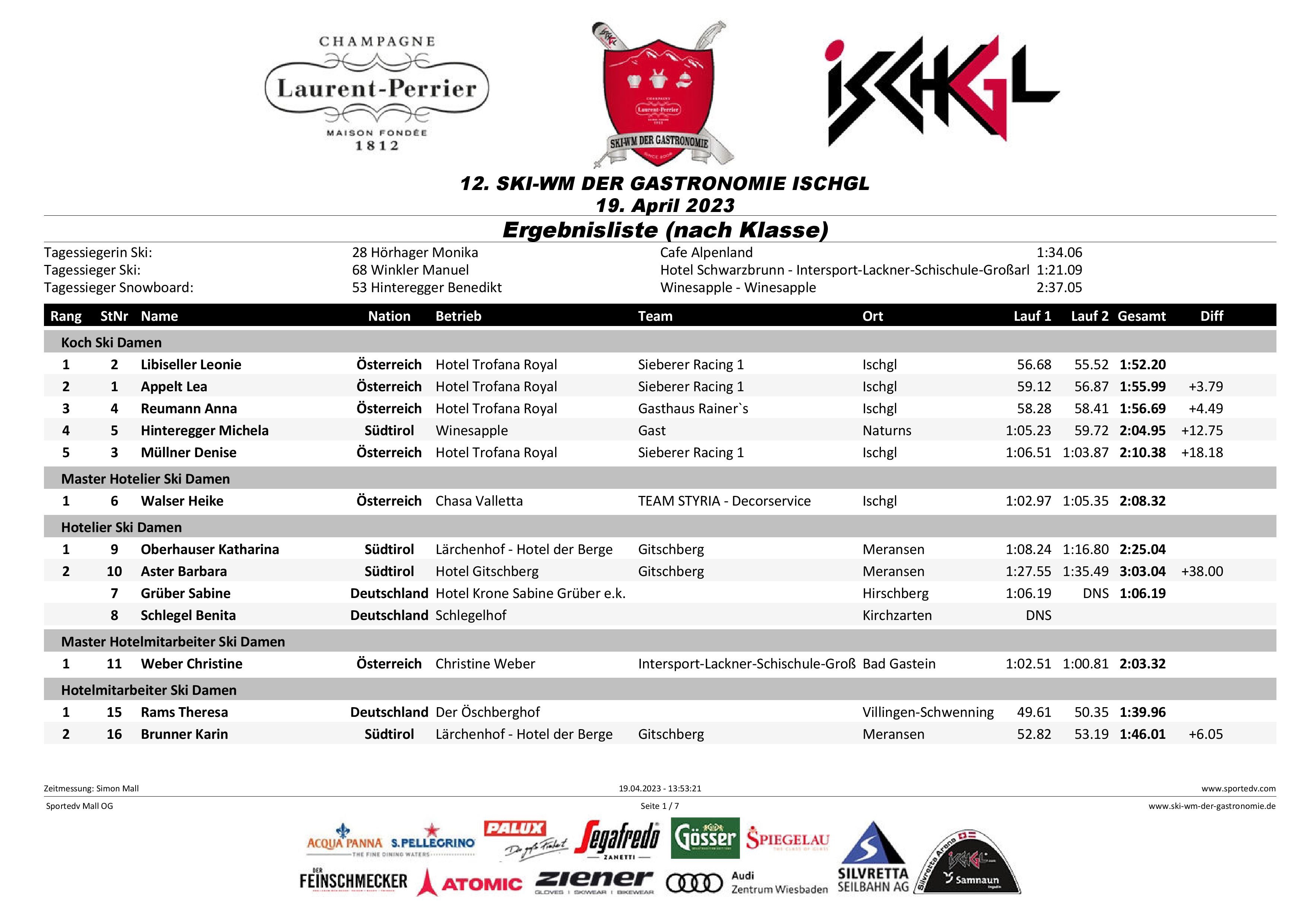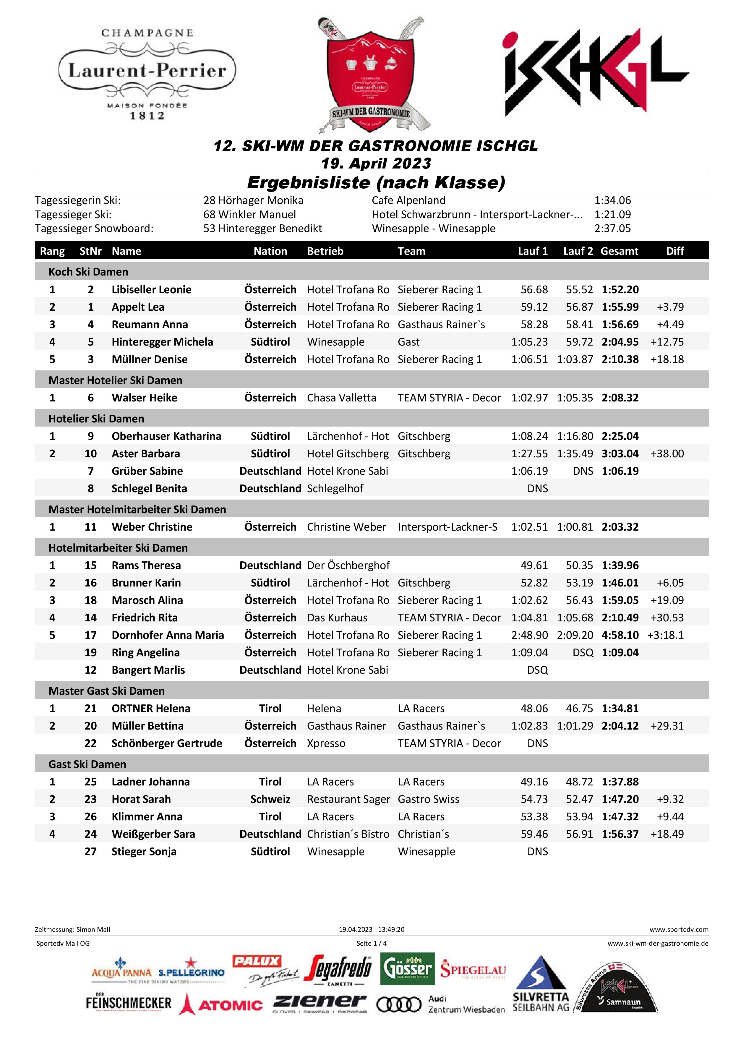 1. | 135 | PIRCHER Carolin | Hotel Stefanie | AUT | F | 42.72 | 42.19 | 1:24.91 | |