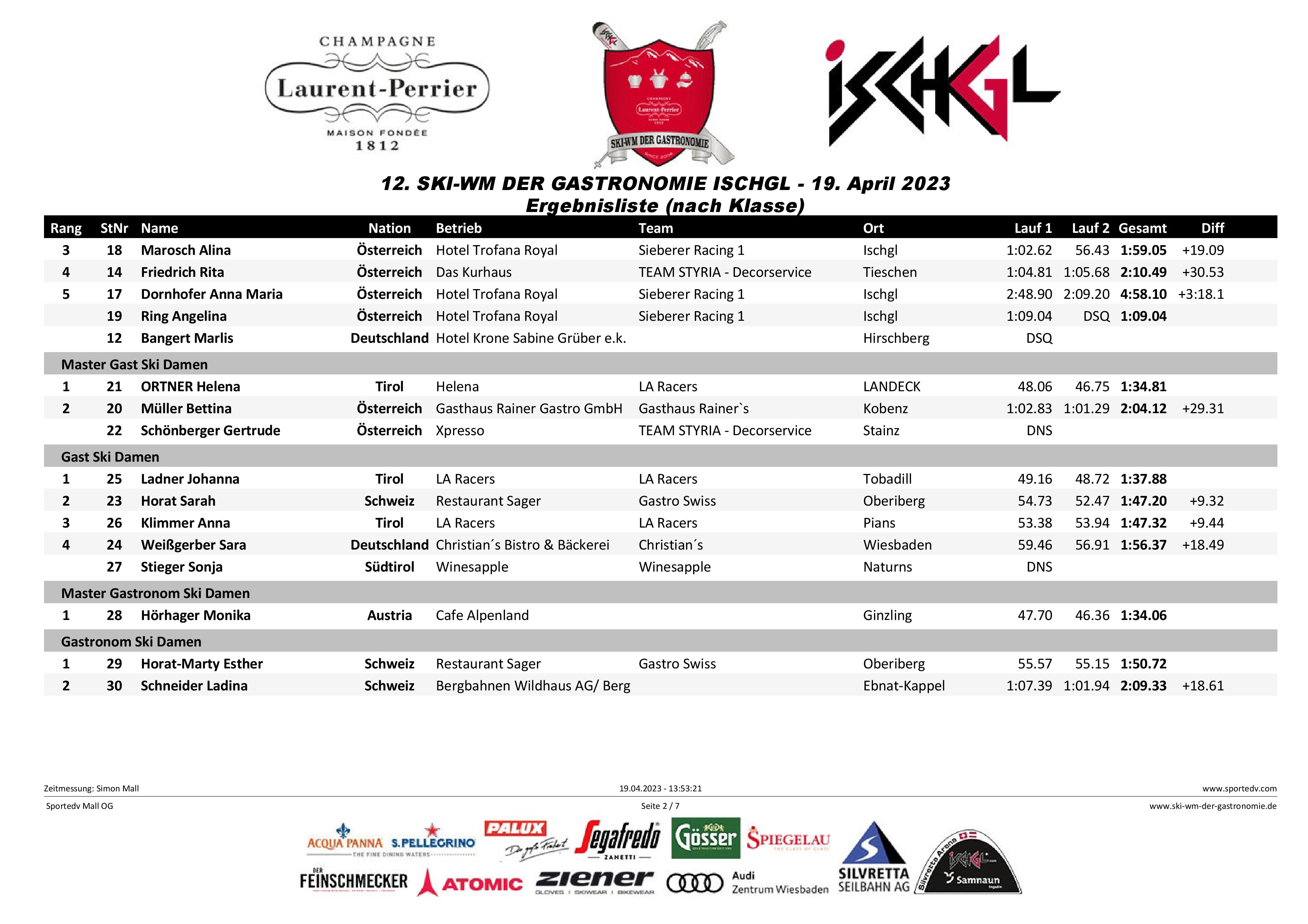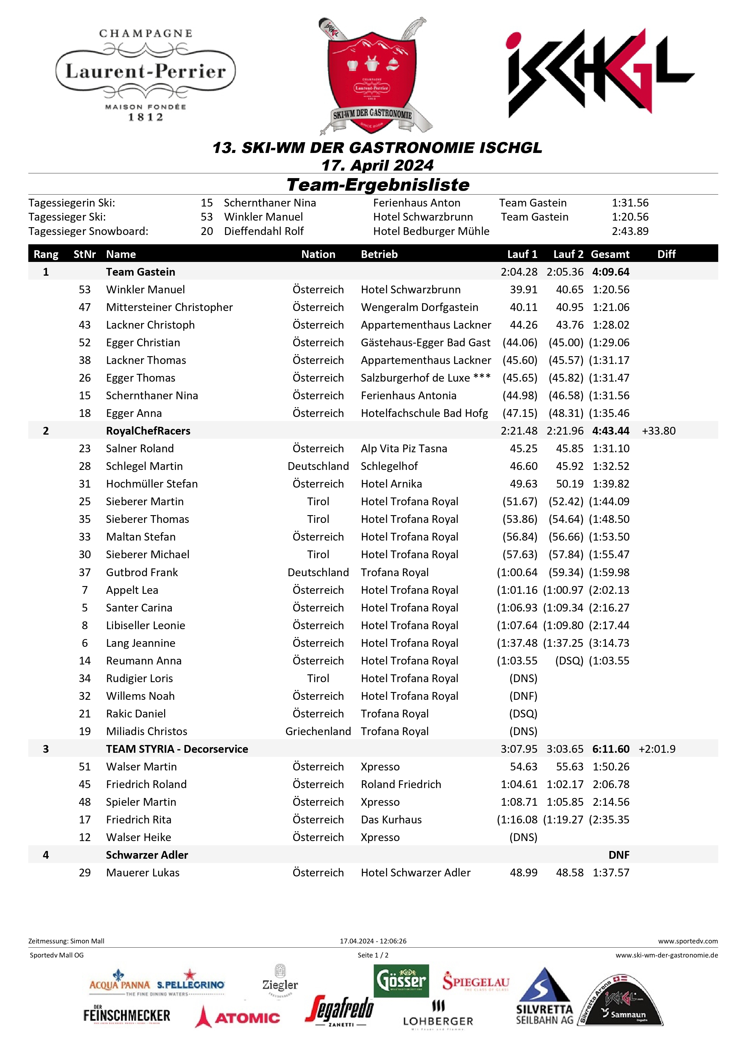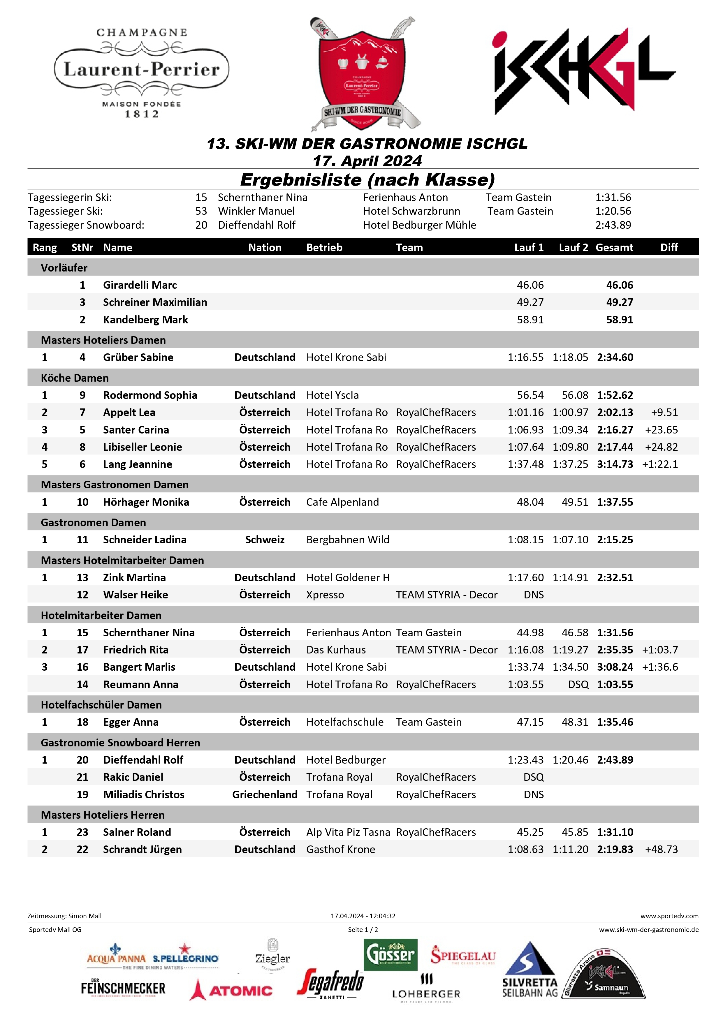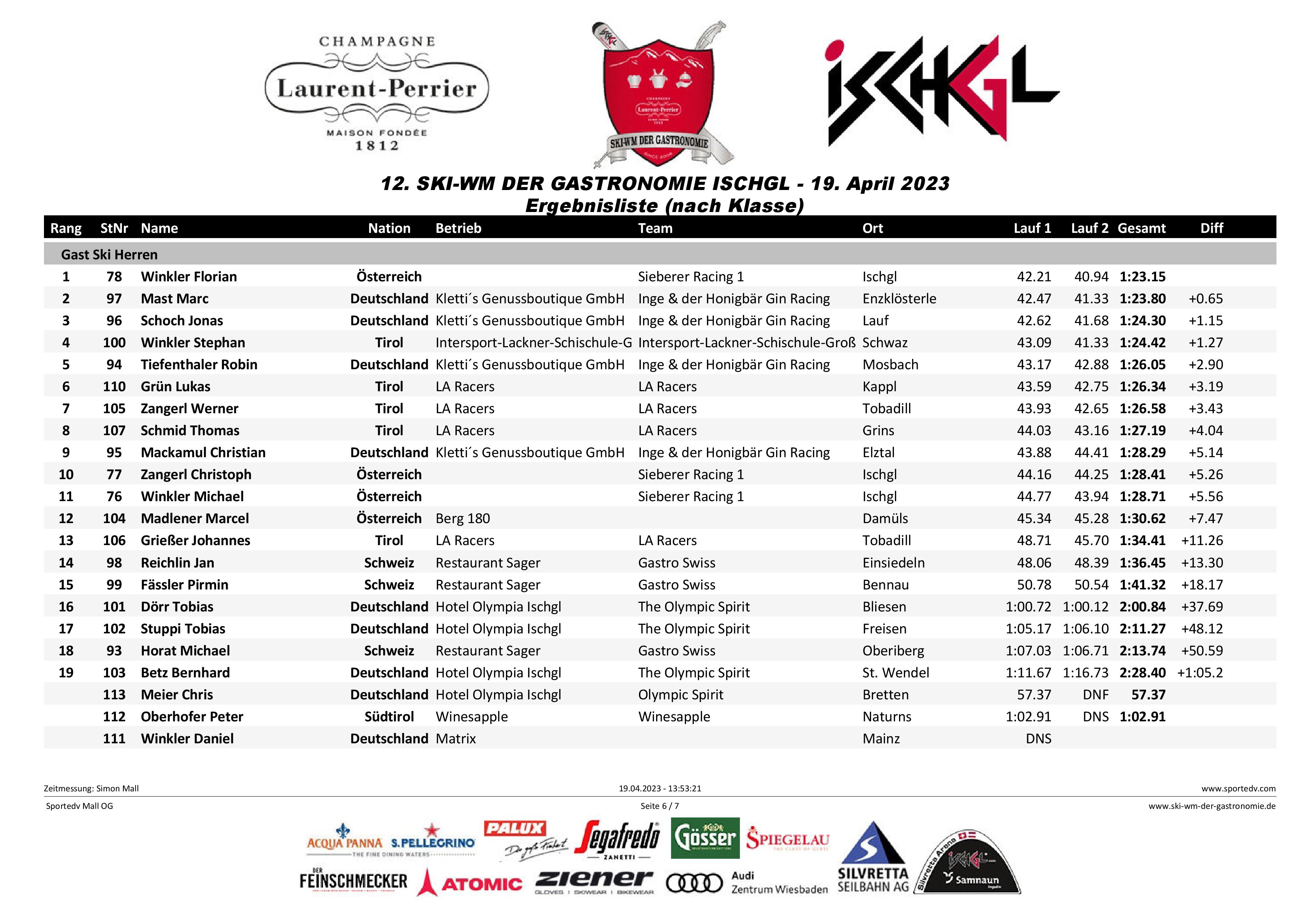 # | StNr. | Name | Restaurant / Hotel | NAT | Ges | DG 1 | DG 2 | GESAMT | Diff |