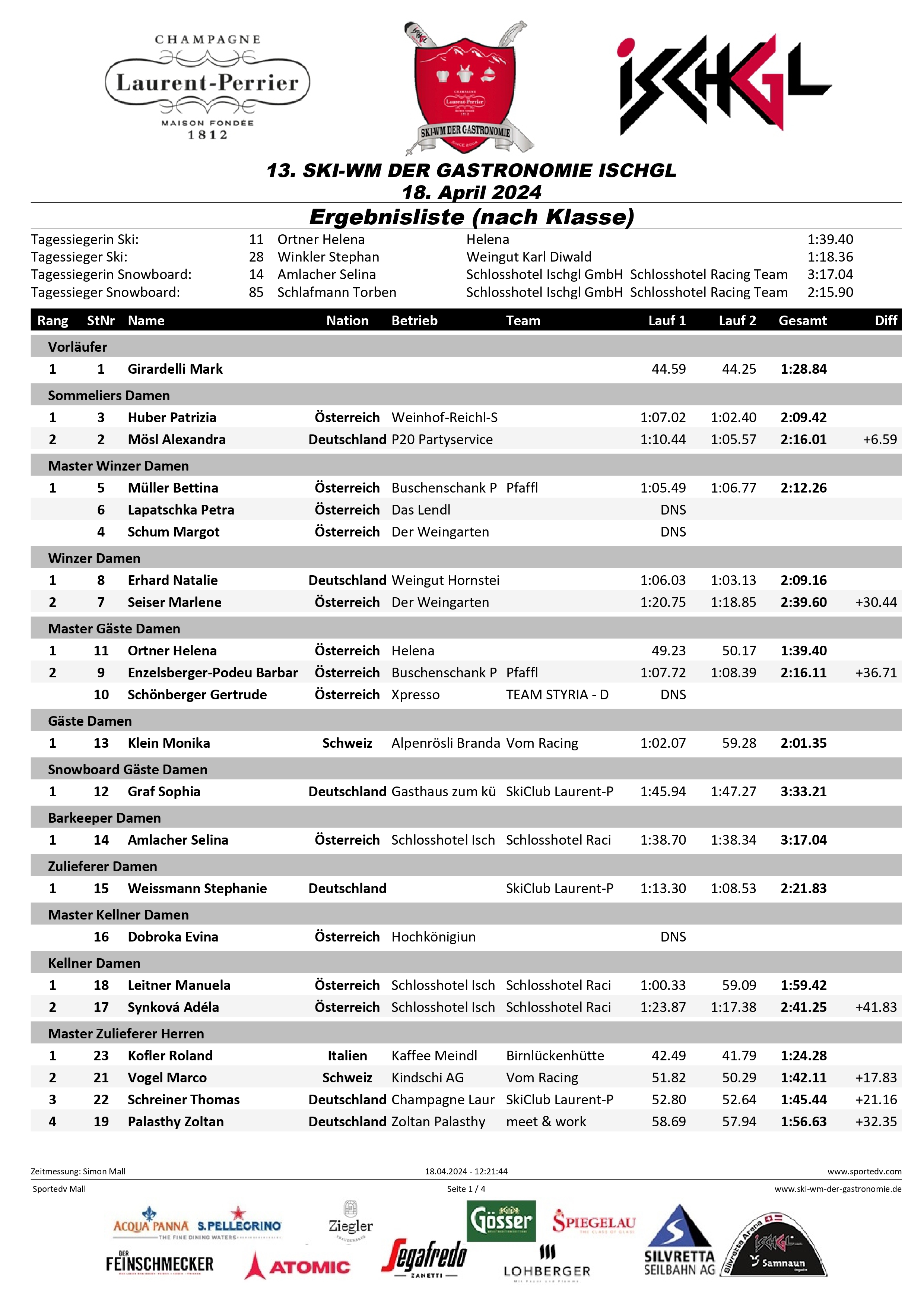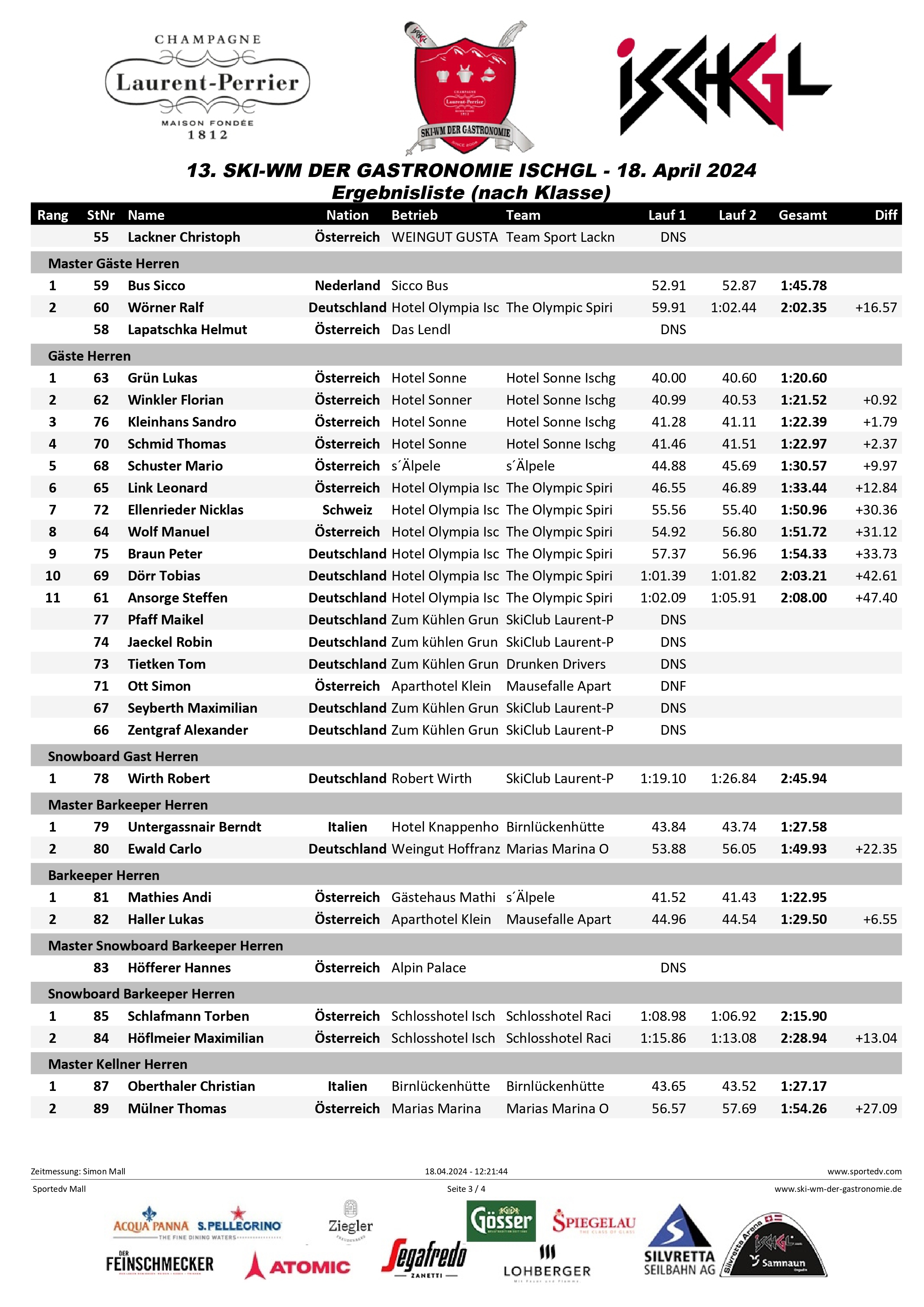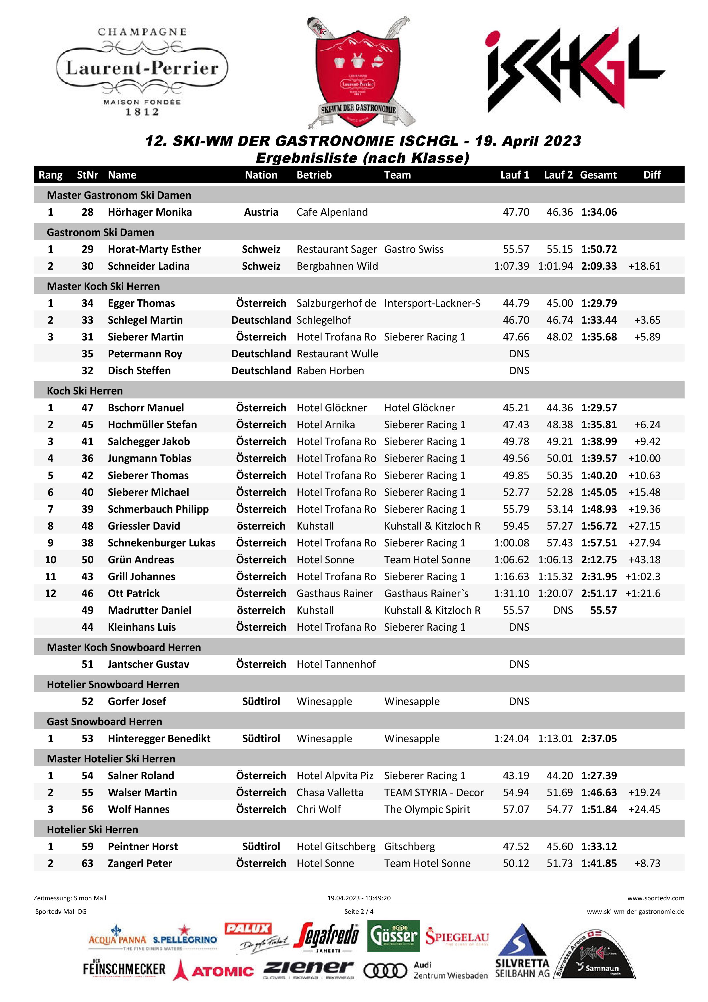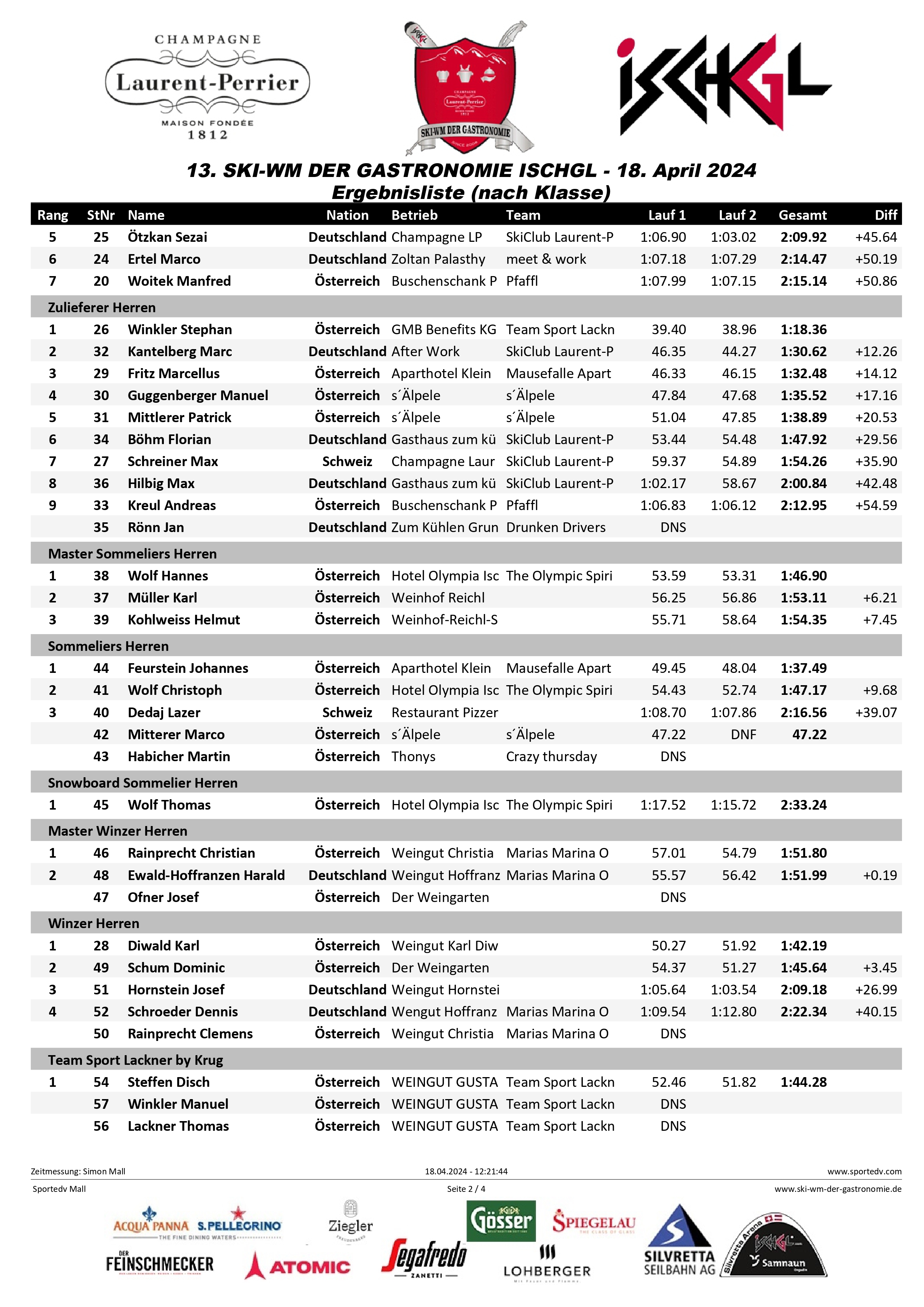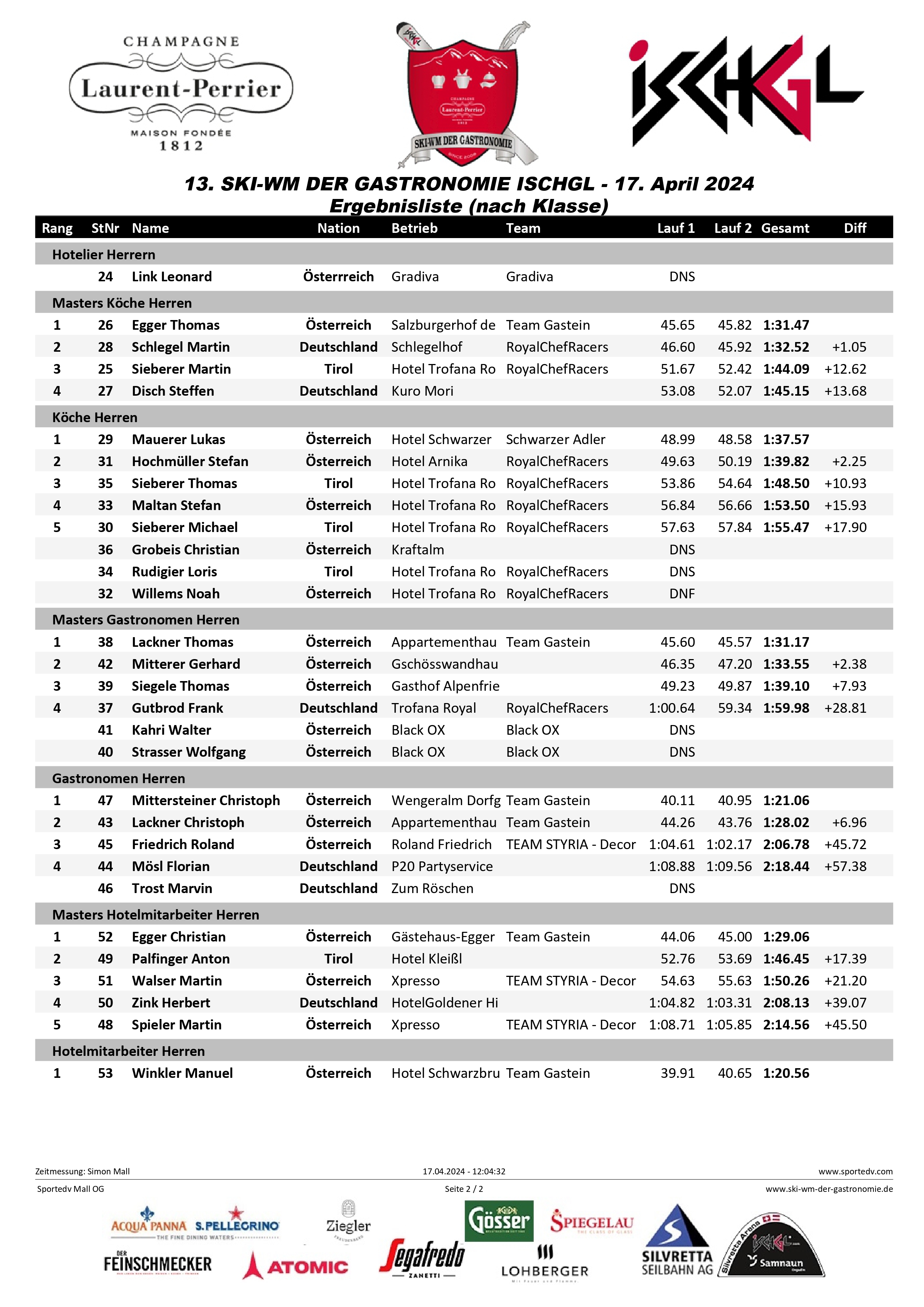 1. | 131 | HUBER Patrick | Huberhotel Almhof | AUT | M | 42.40 | 40.58 | 1:22.98 | |