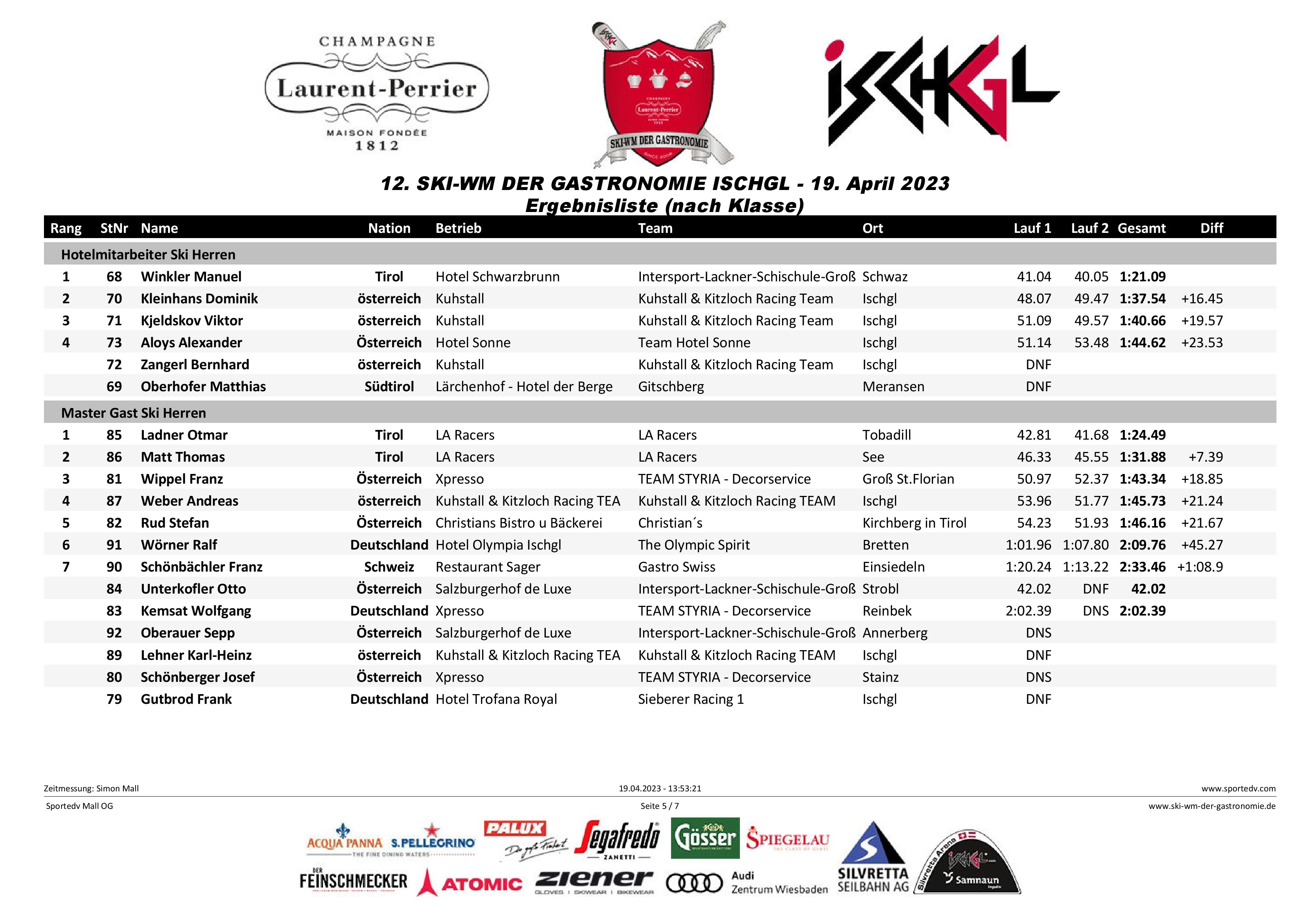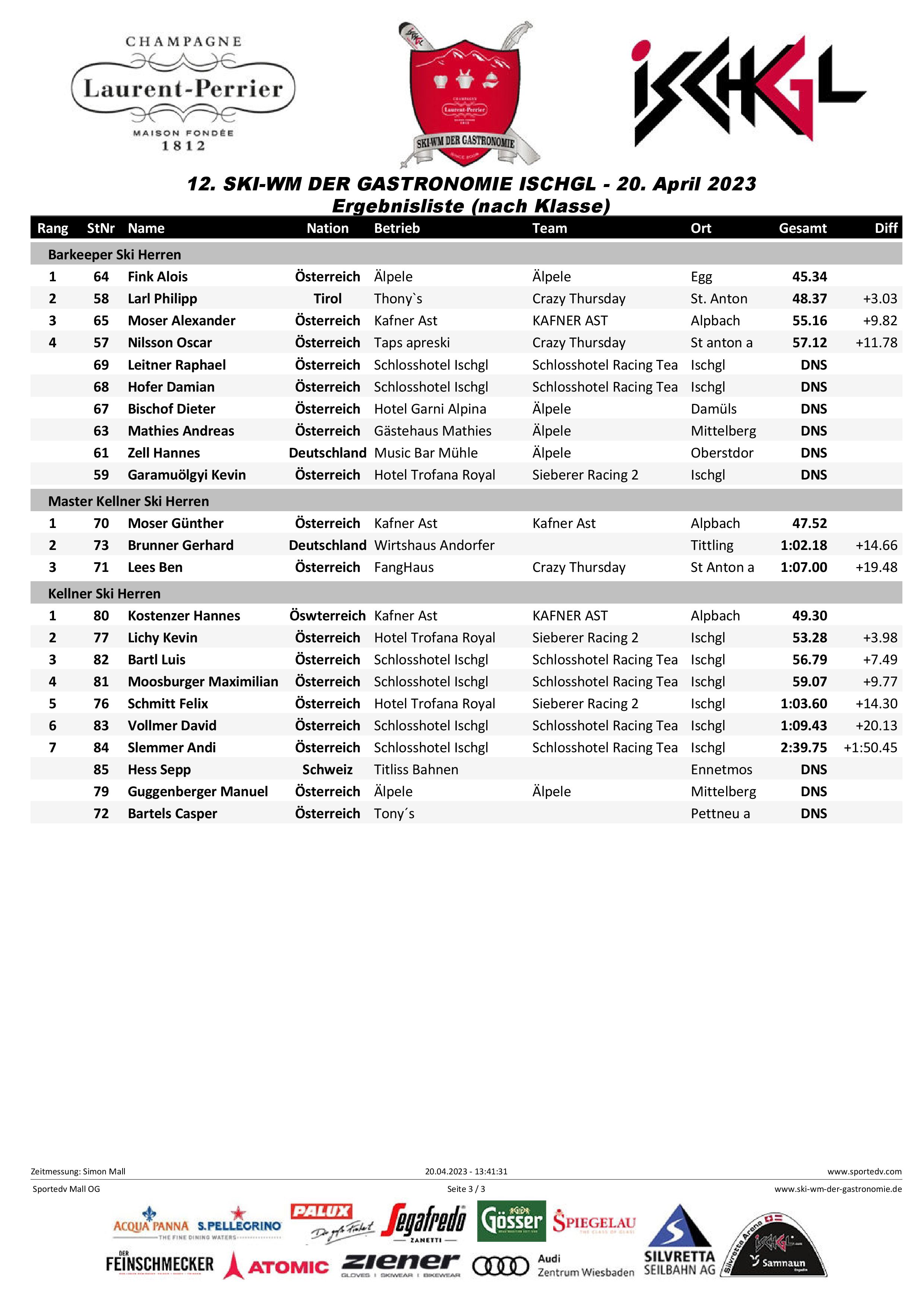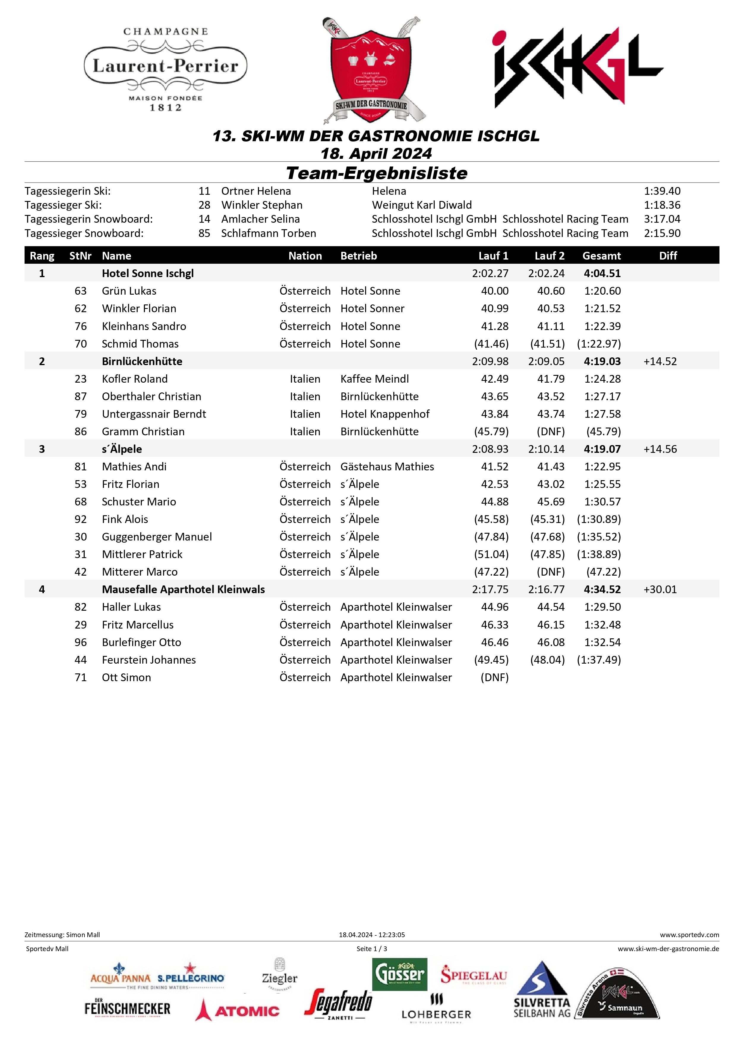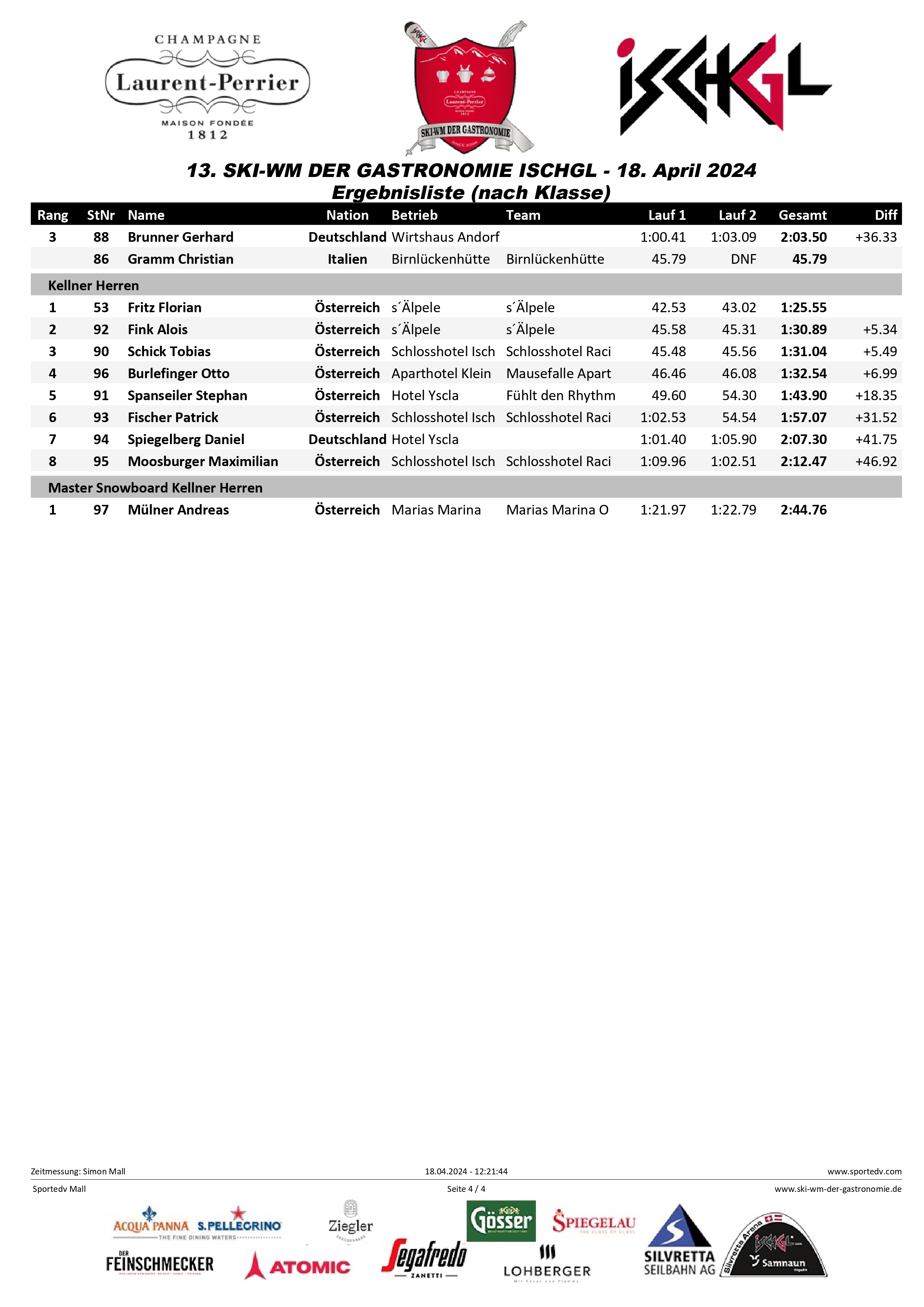 1. | 131 | HUBER Patrick | Huberhotel Almhof | AUT | M | 42.40 | 40.58 | 1:22.98 | |