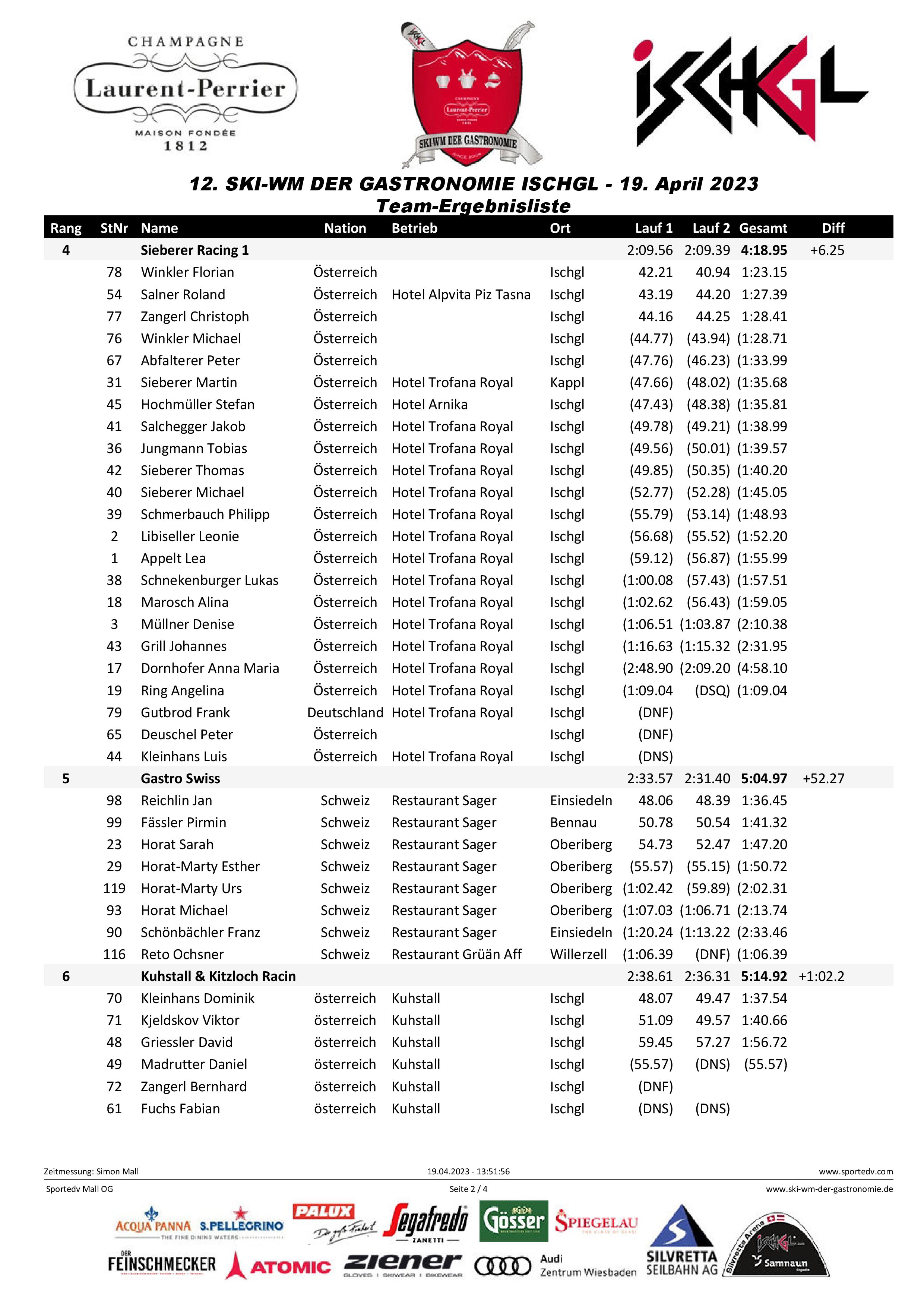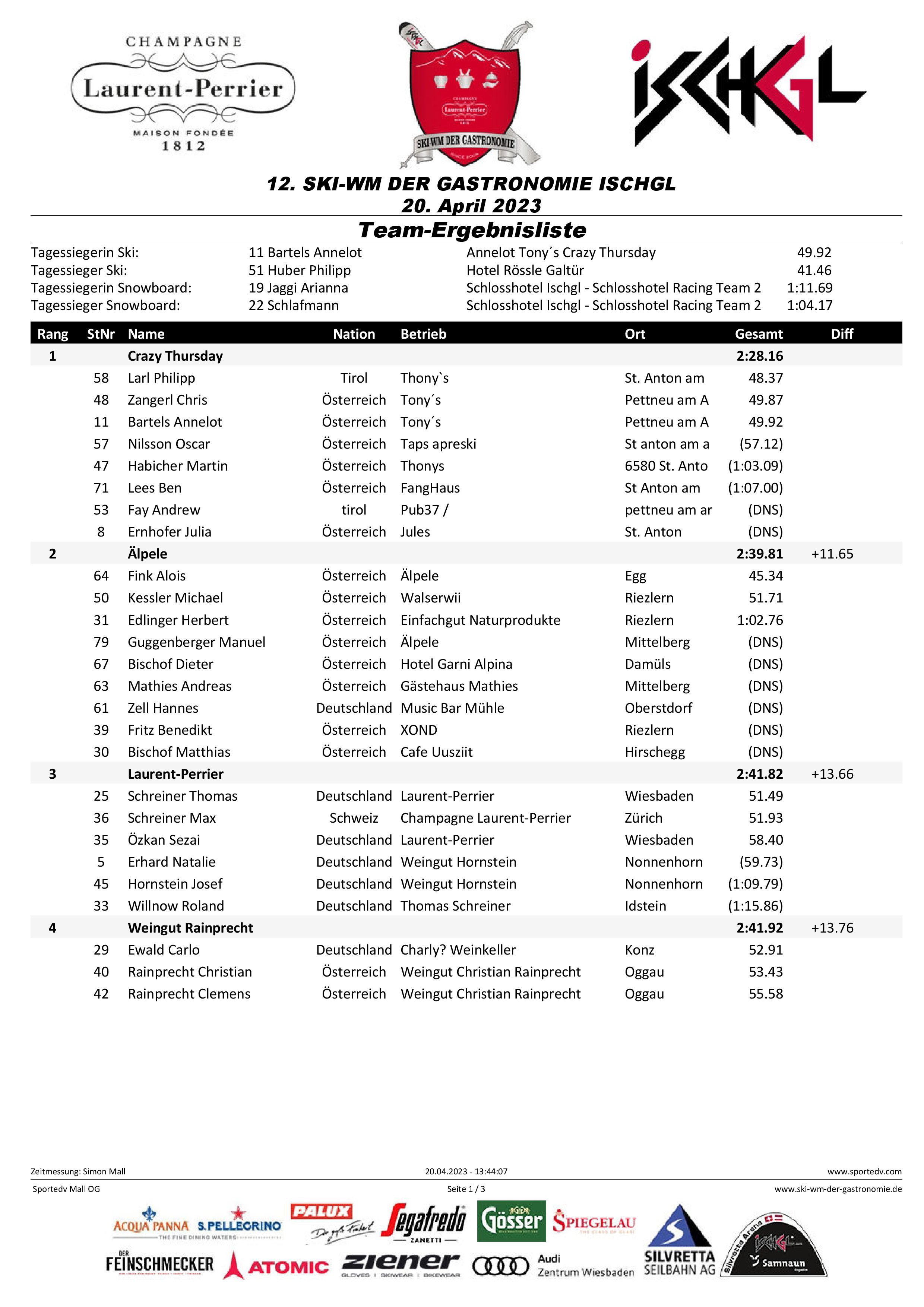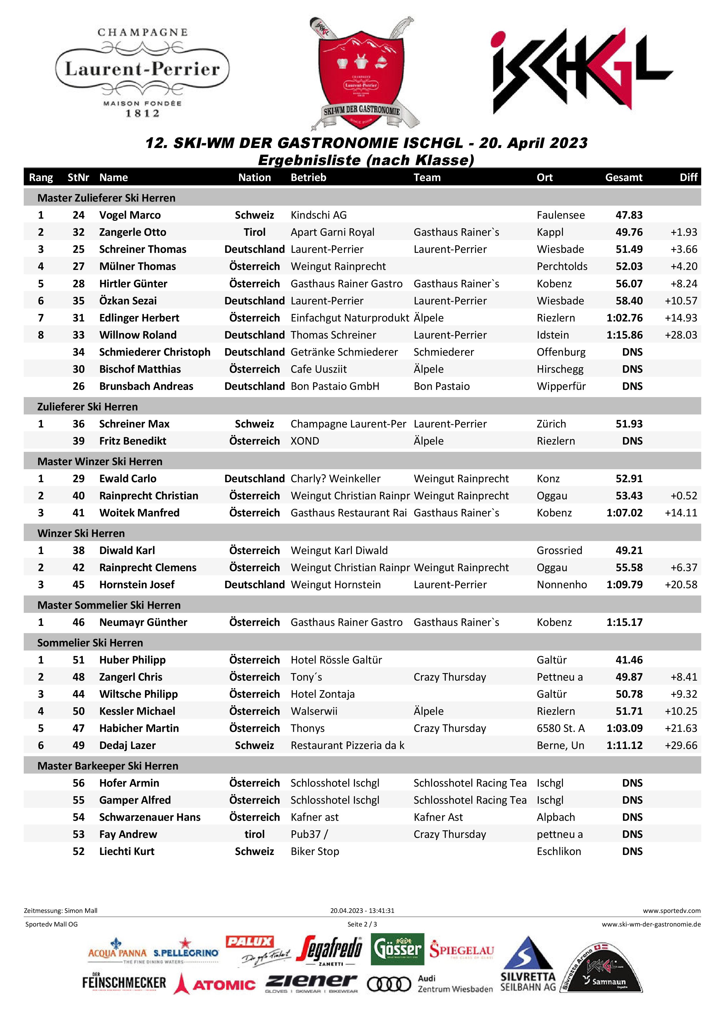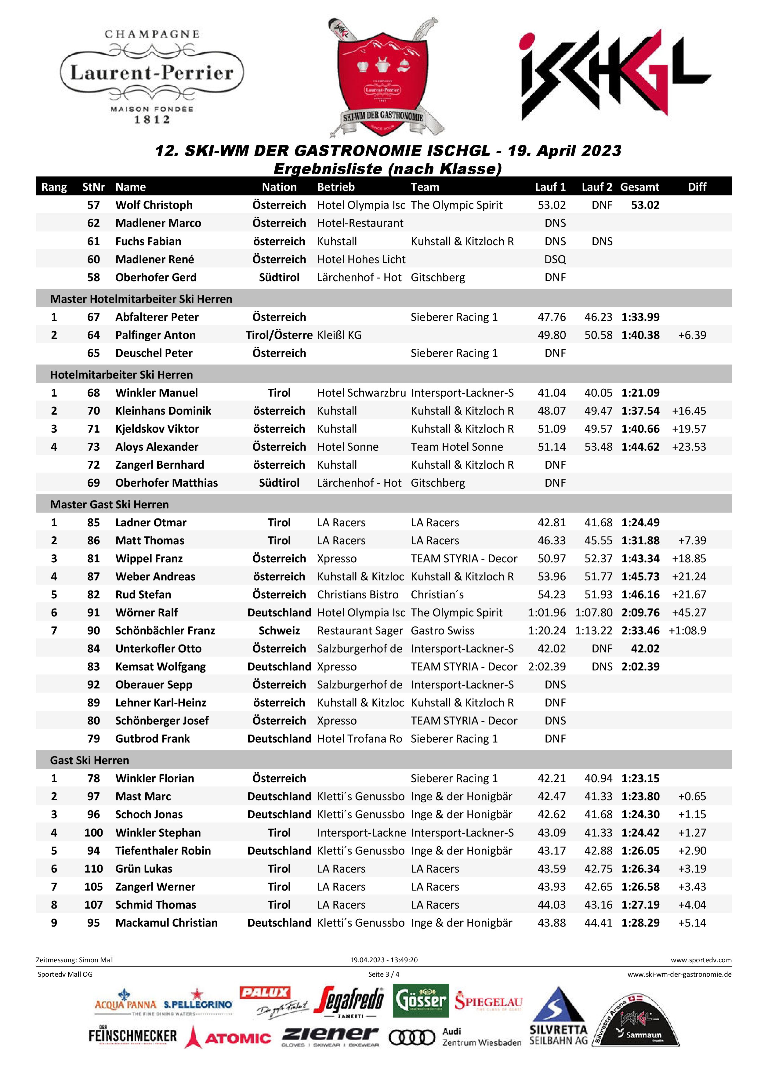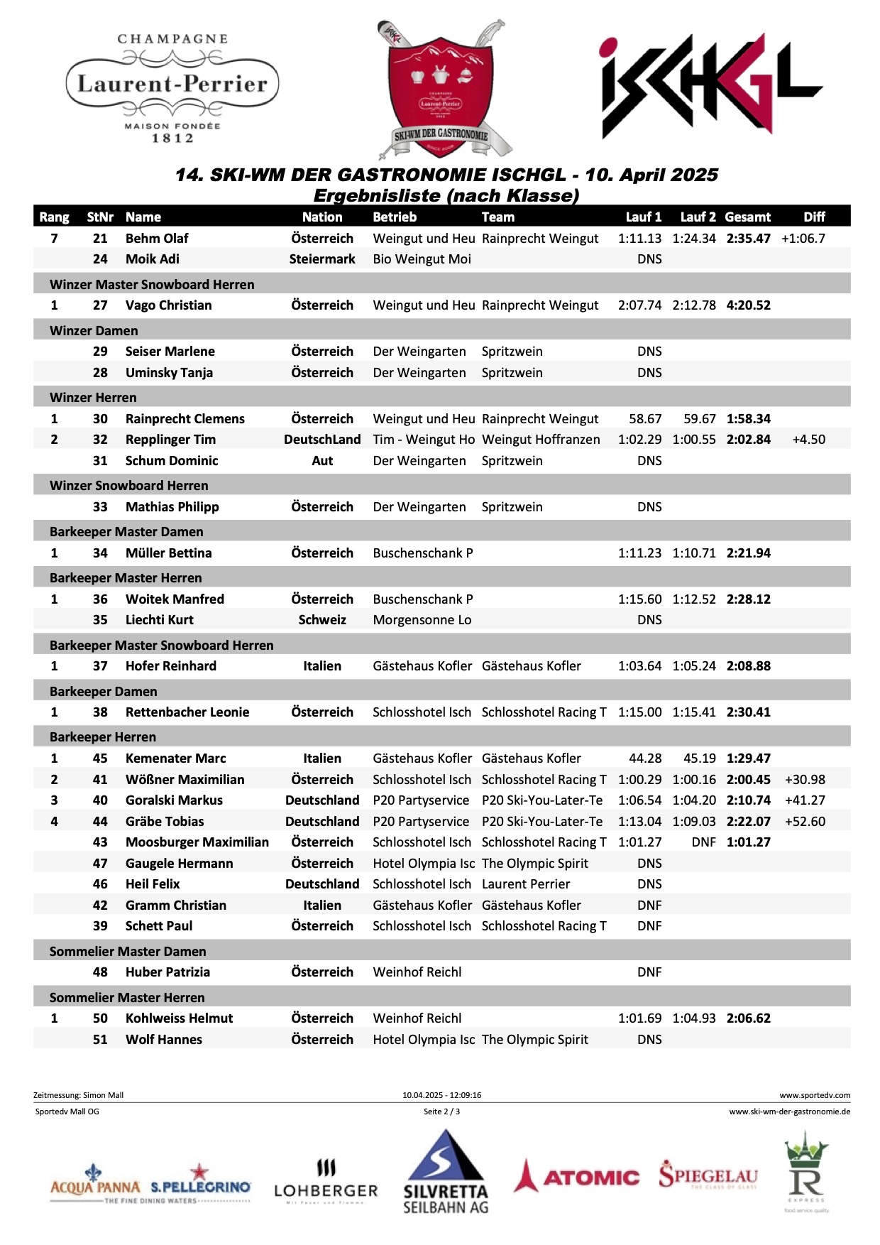 1. | 131 | HUBER Patrick | Huberhotel Almhof | AUT | M | 42.40 | 40.58 | 1:22.98 | |