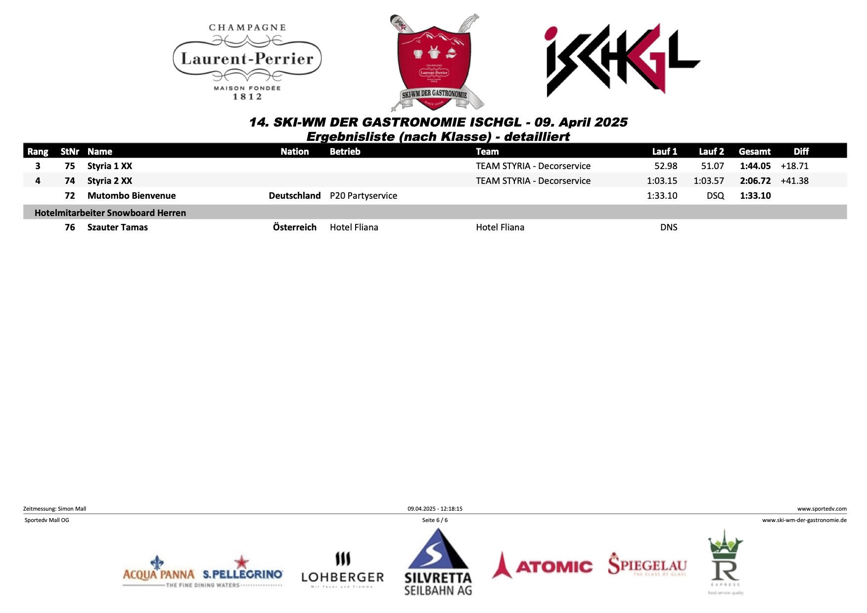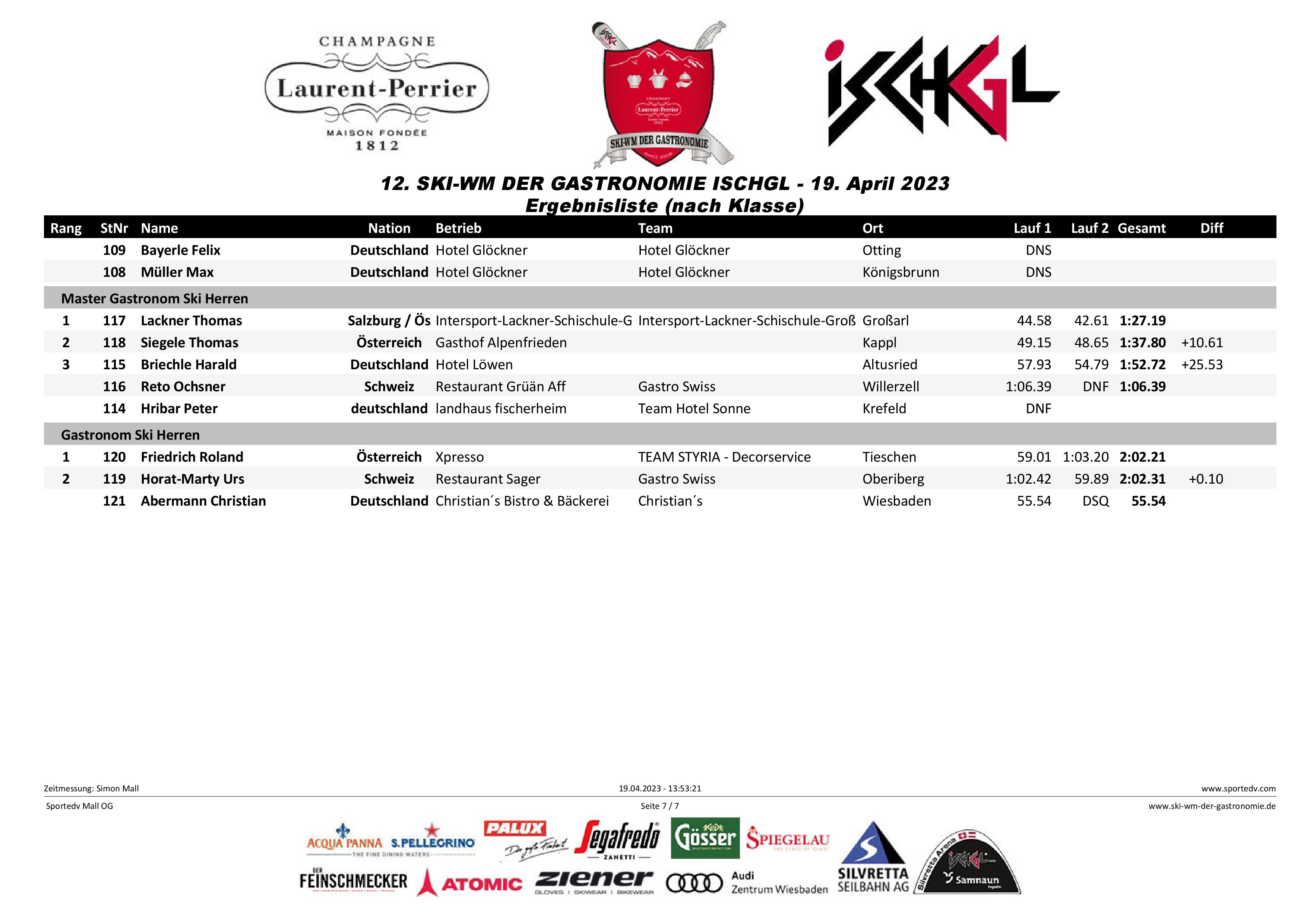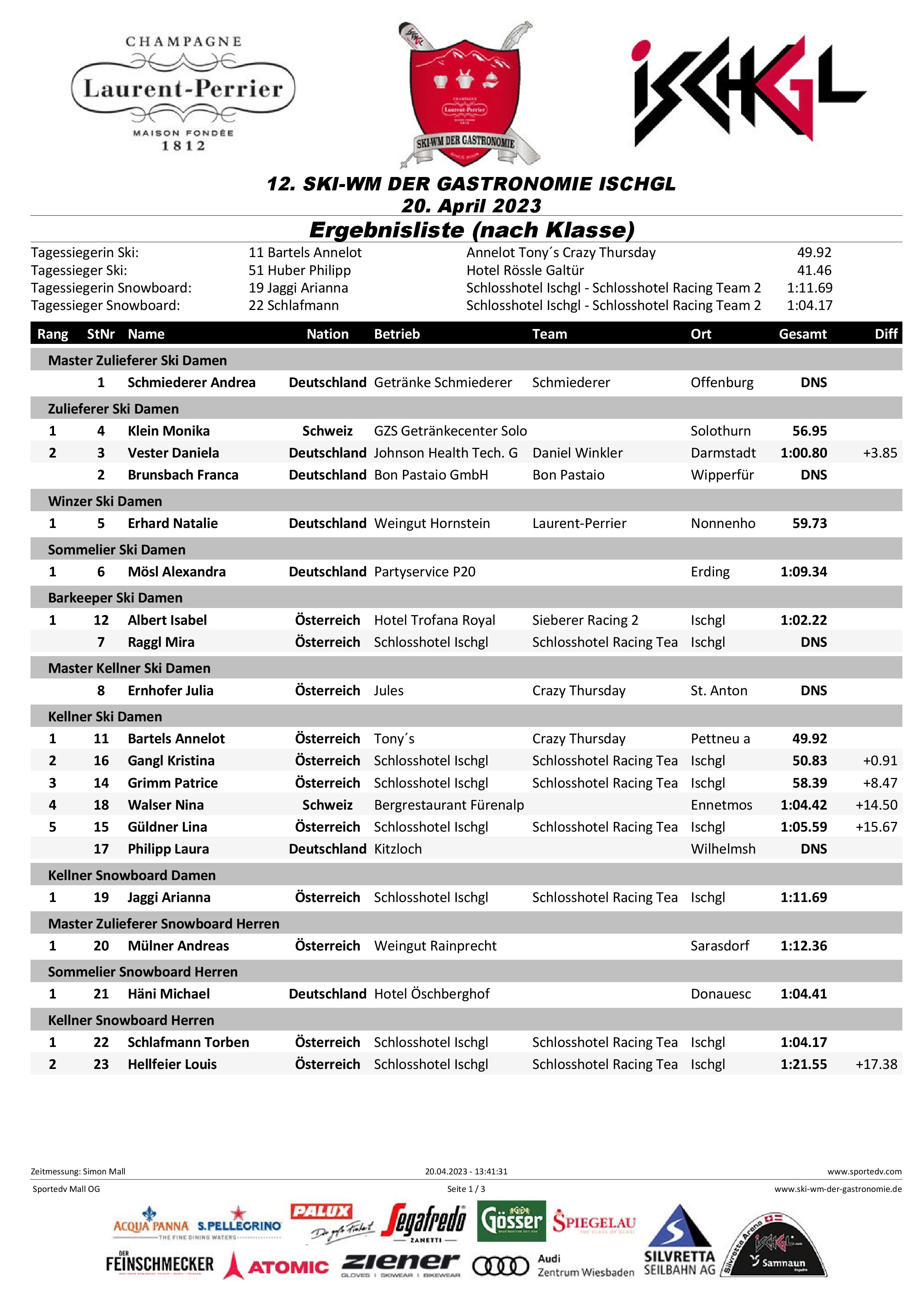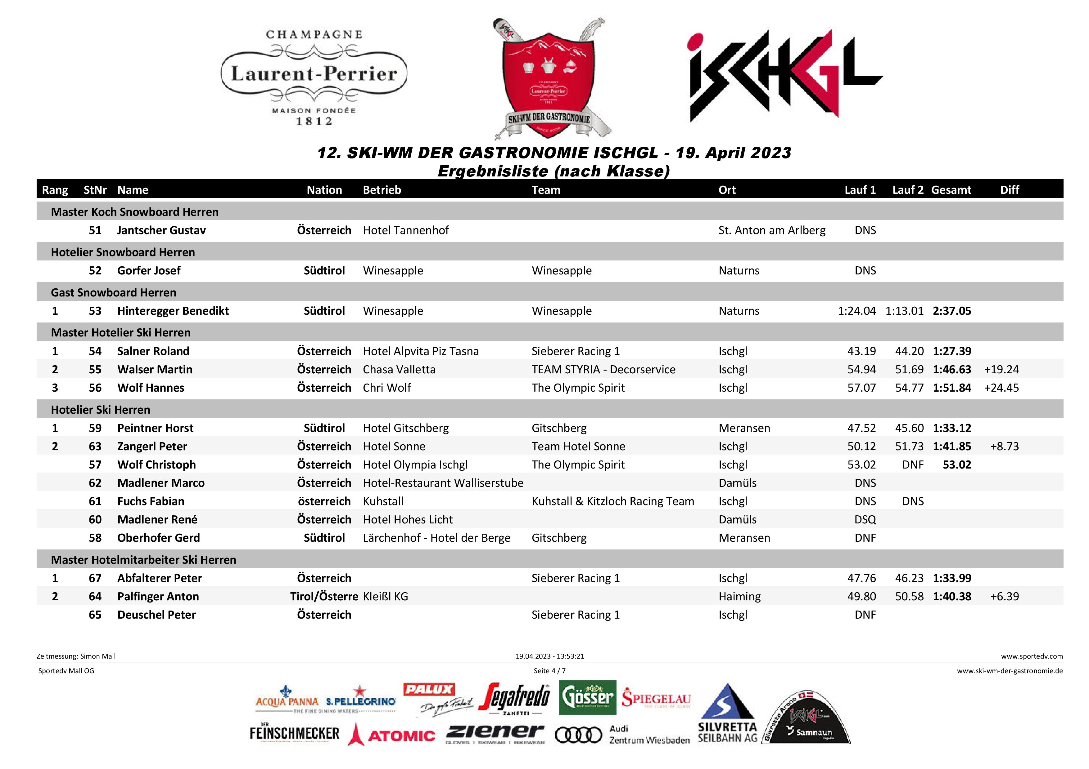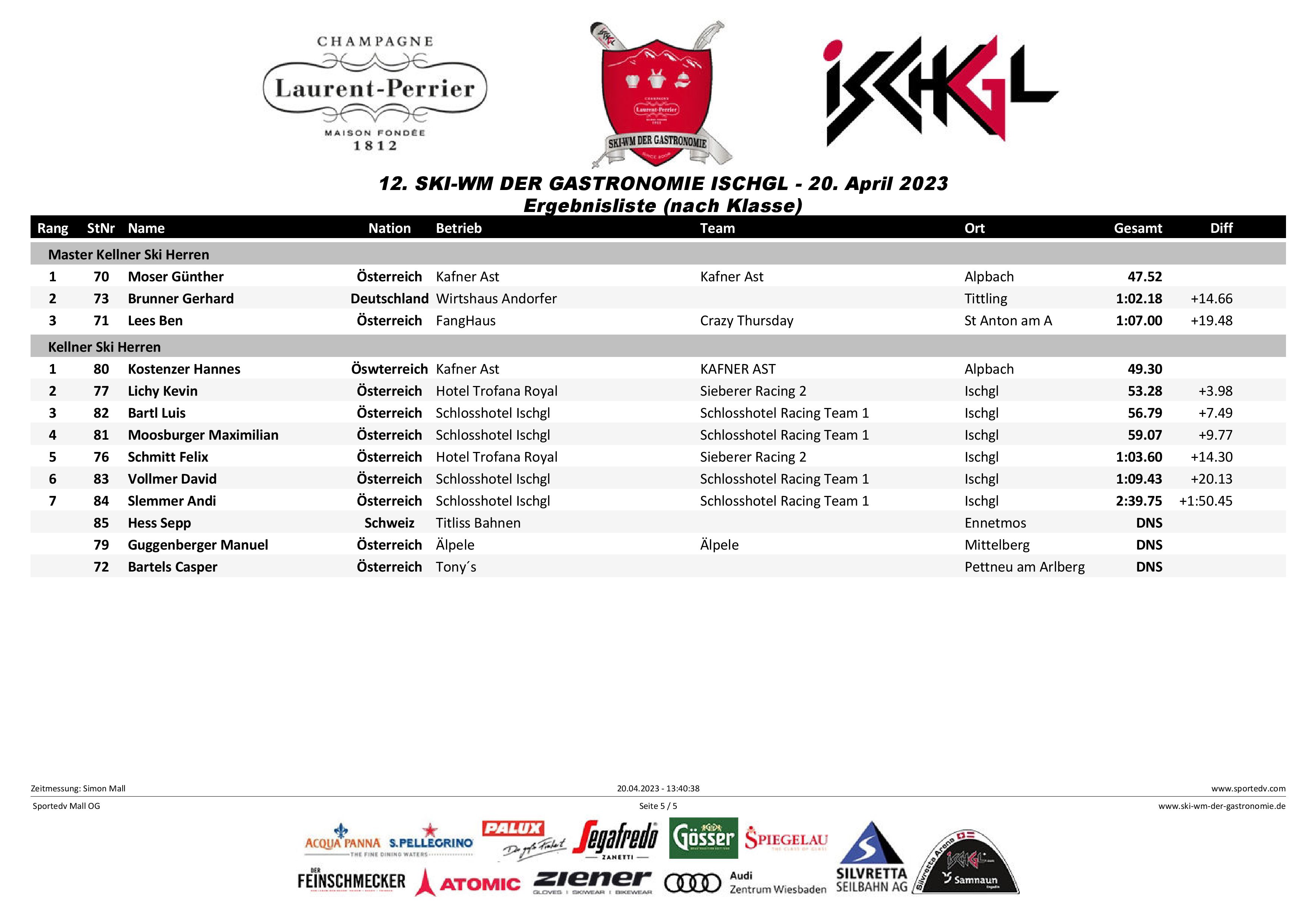 1. | 131 | HUBER Patrick | Huberhotel Almhof | AUT | M | 42.40 | 40.58 | 1:22.98 | |