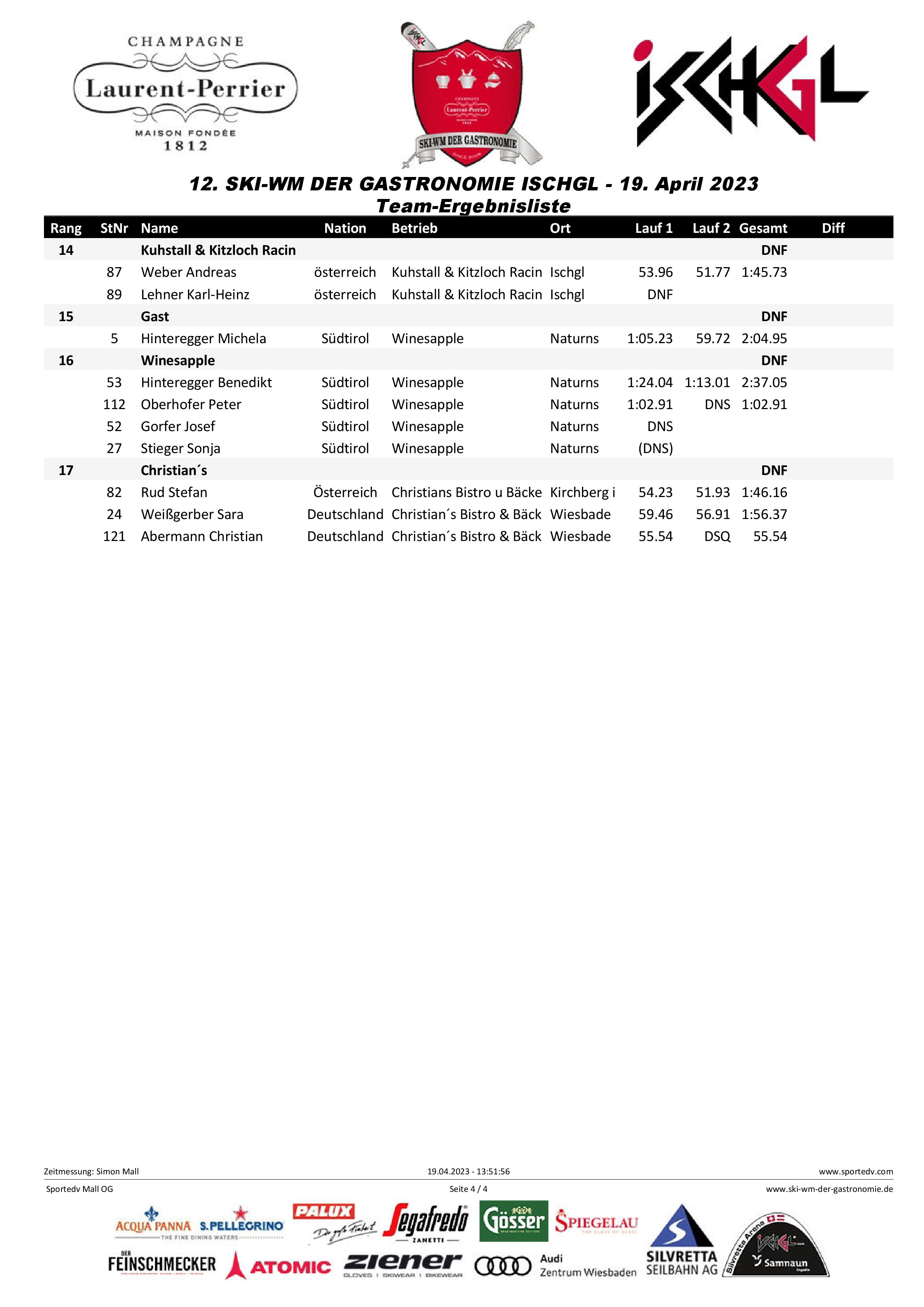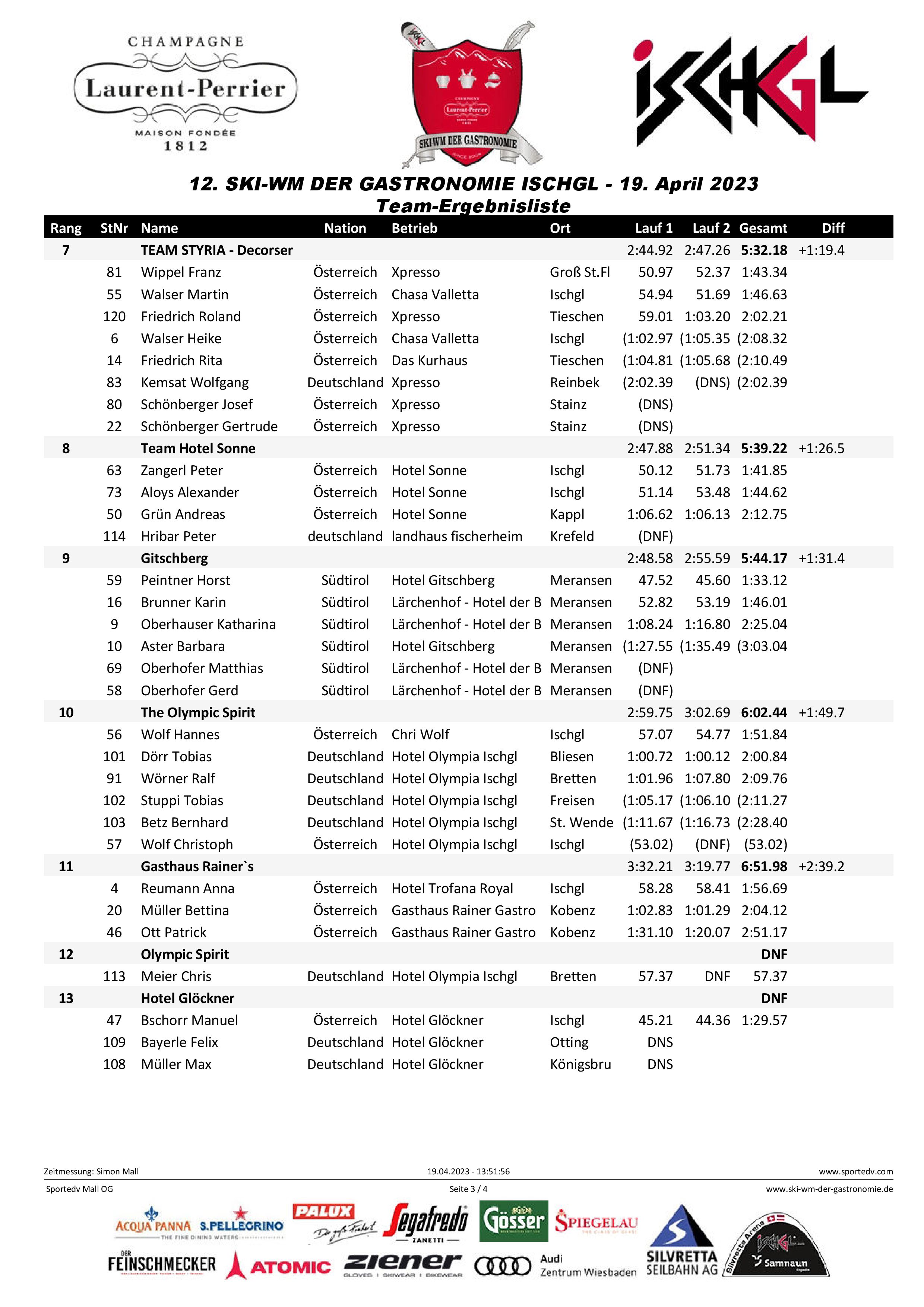12. | 126 | AYTEKIN Serdar | Schlosshotel Romantica 4****S | GER | M | 1:08.49 | 1:04.87 | 2:13.36 | +50.38 |