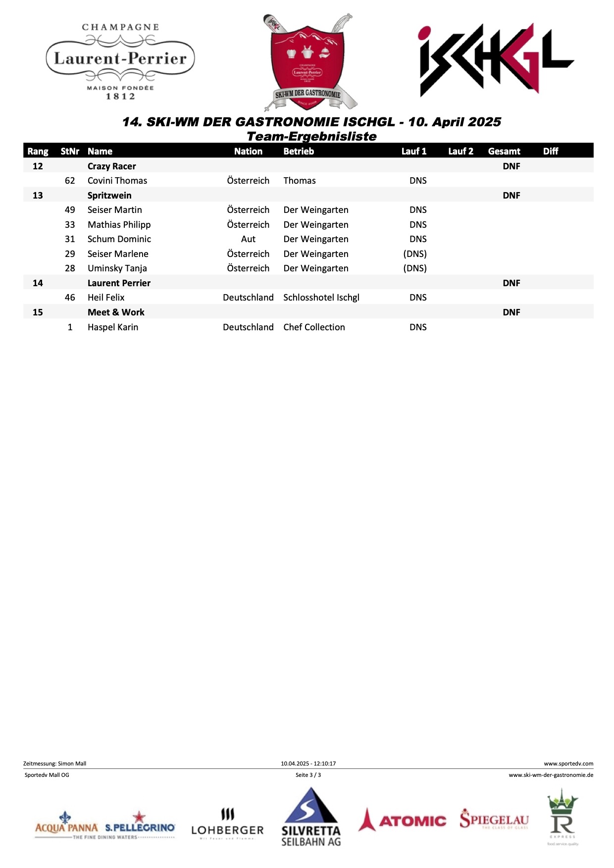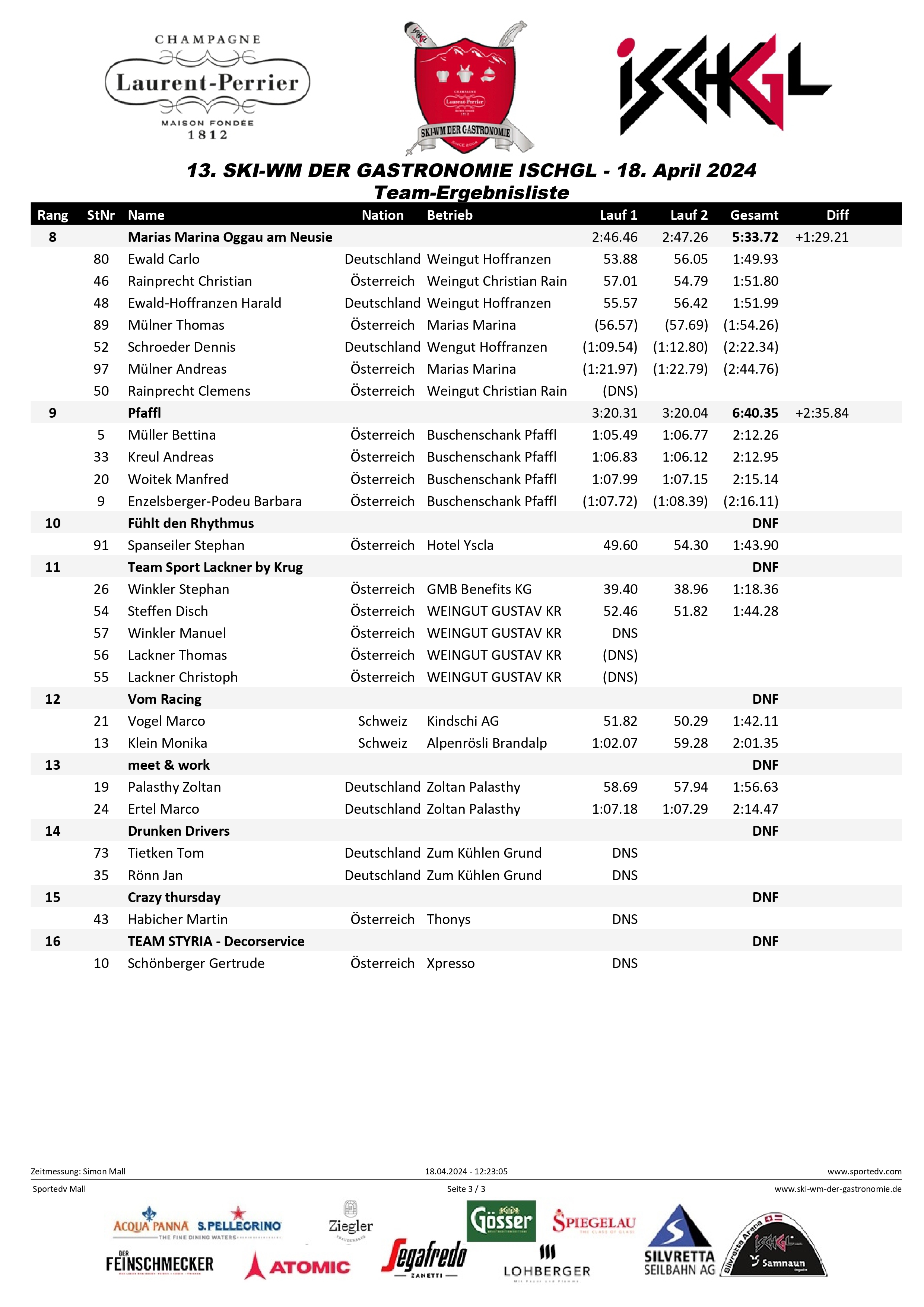 15. | 119 | SÜDSEE Heinz | Trofana Alm | AUT | M | DNF |