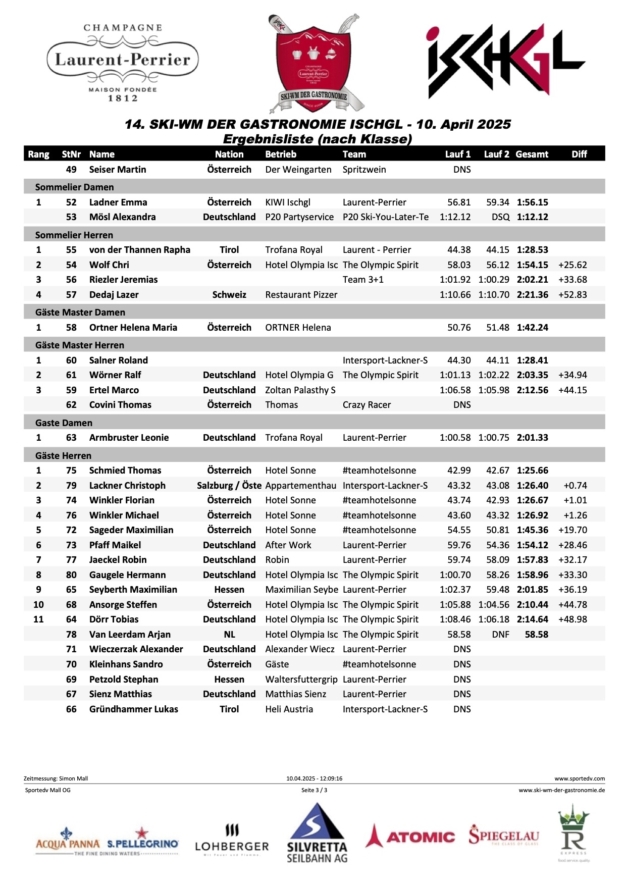 3. | 142 | WINKLER Wolfgang | Schlosshotel Romantica 4****S | AUT | M | 45.33 | 45.36 | 1:30.69 | +5.55 |