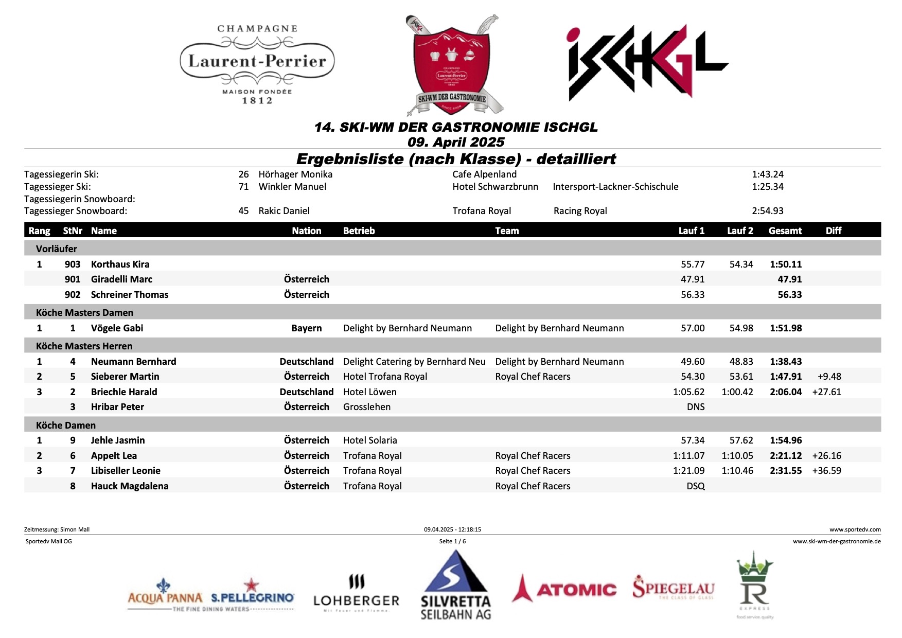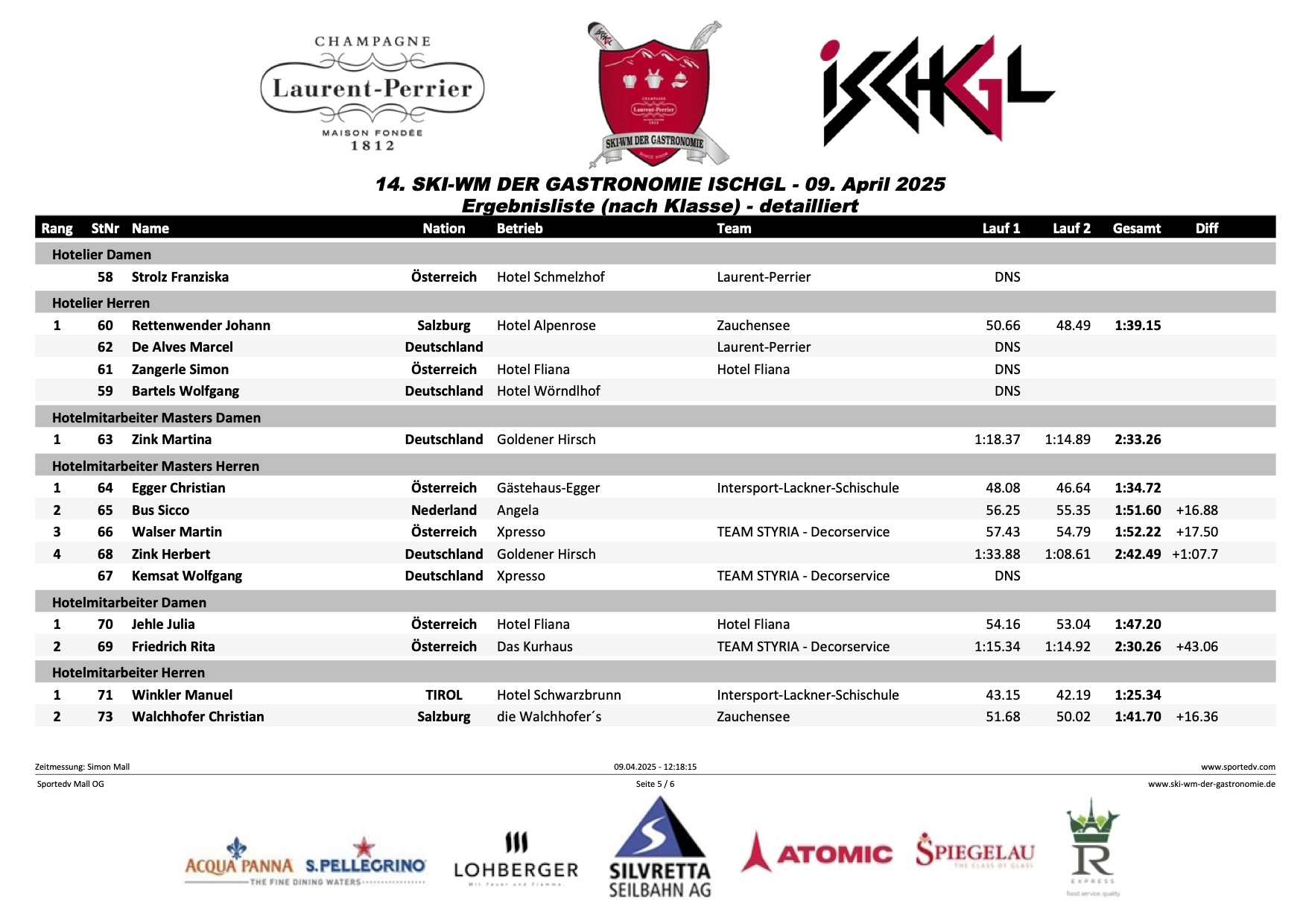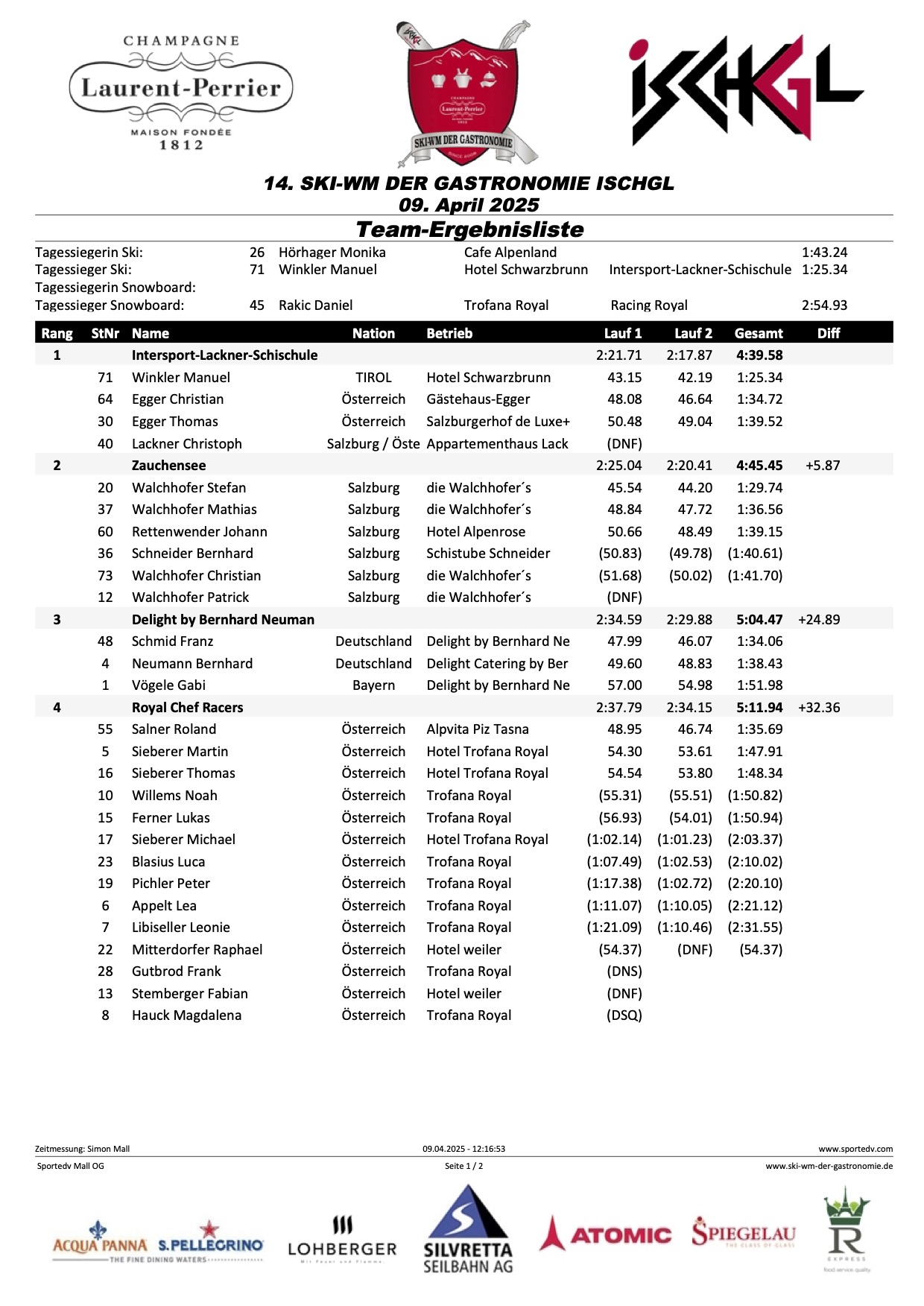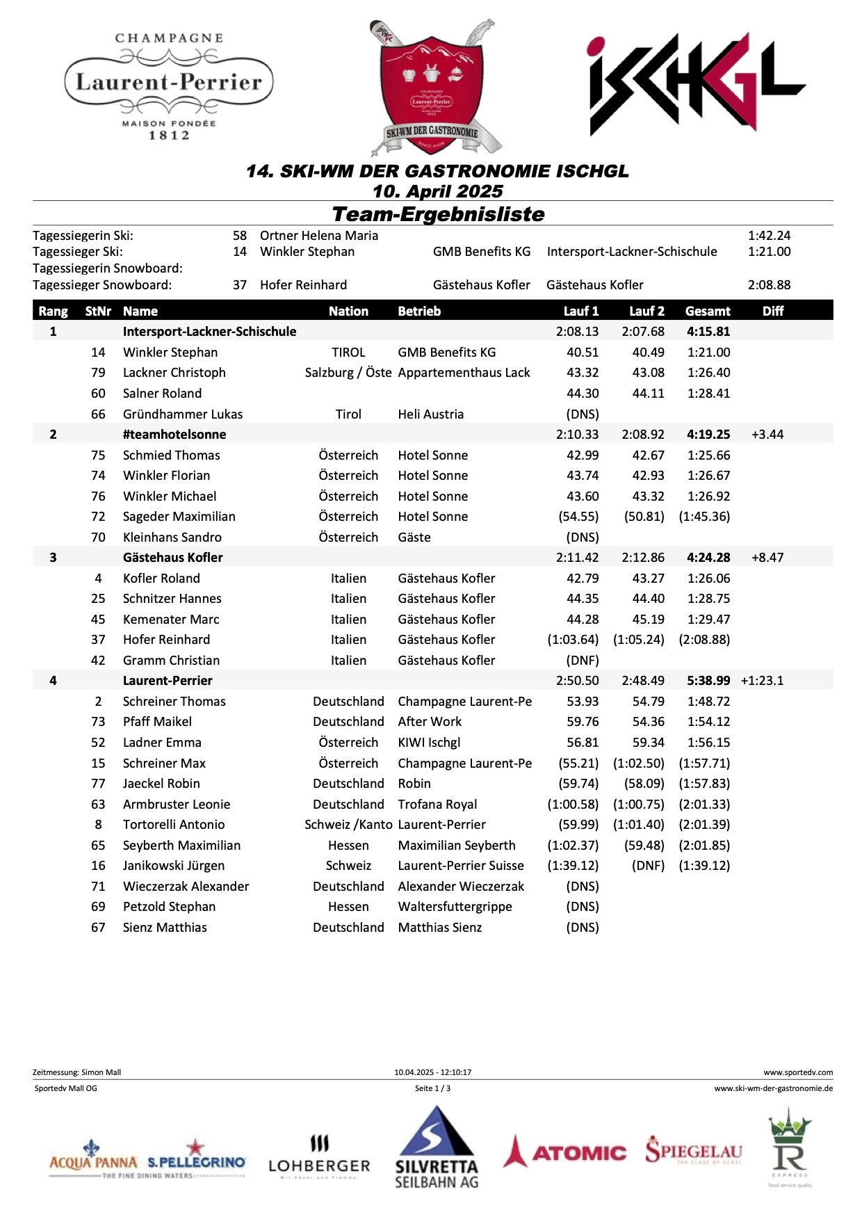 1. | 131 | HUBER Patrick | Huberhotel Almhof | AUT | M | 42.40 | 40.58 | 1:22.98 | |